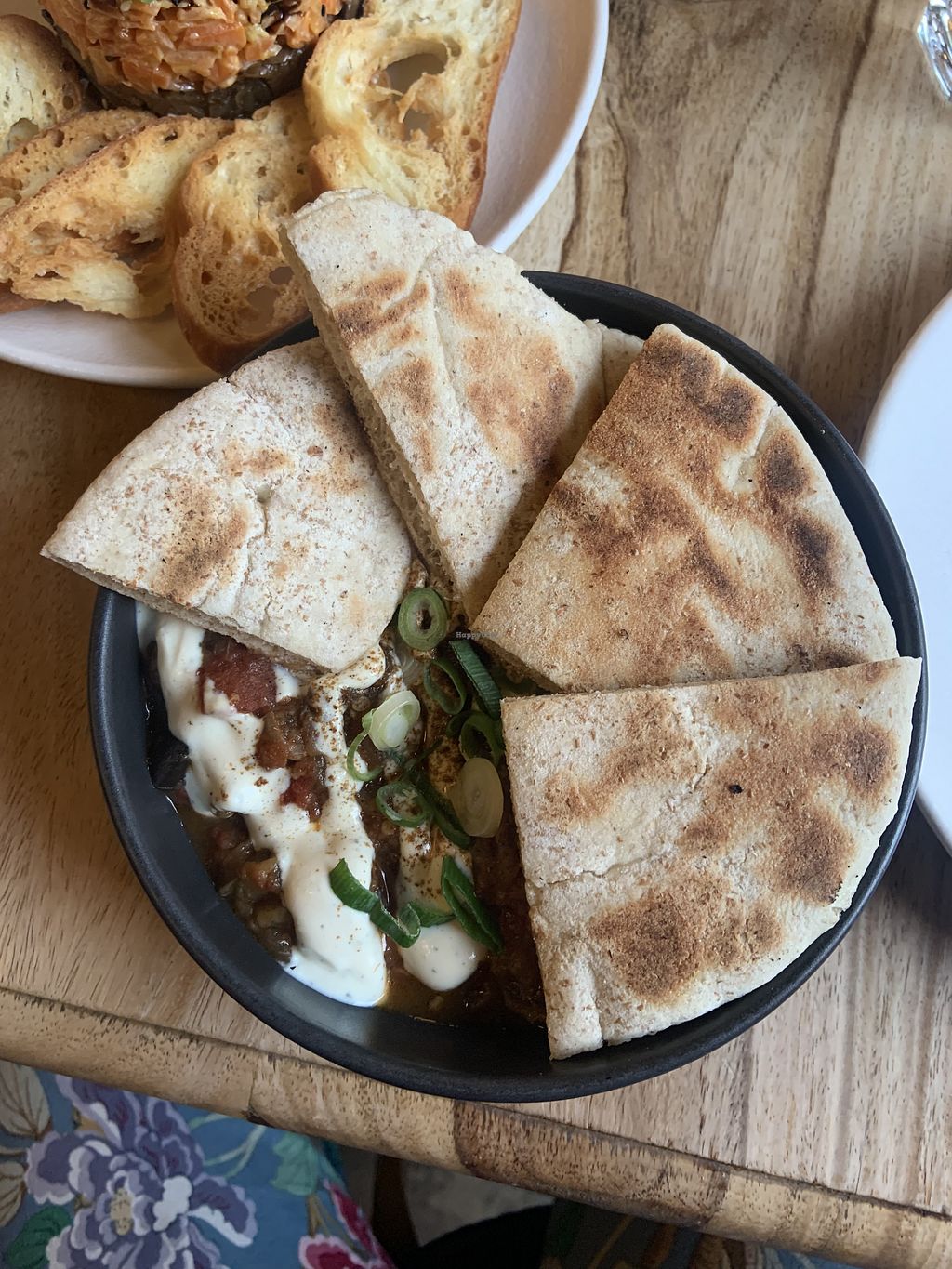 We had the Chilli and a salad, both was very nice. Also the rosé cider. I liked the vegan variety of the menu.