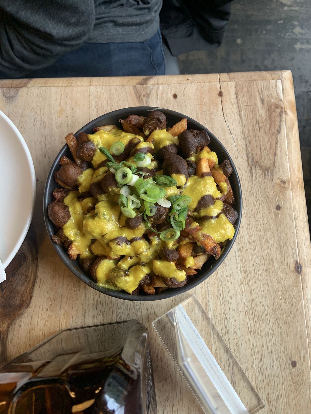 Seitan tacos and poutine were so good, very filling, nice outdoor seating