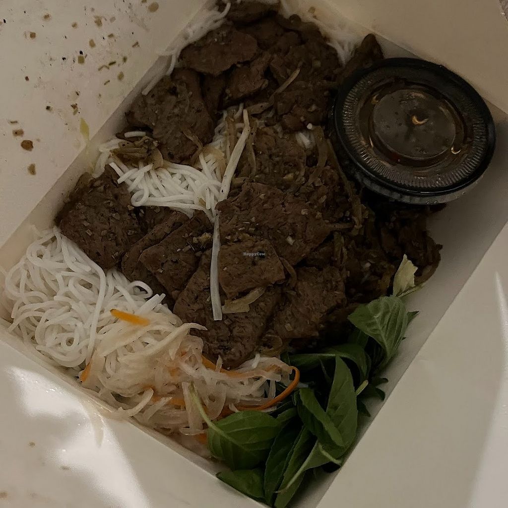 We ordered the spicy noodle Bun Hue soup and the mushroom cha cha. The soup was good value and had a decent amount of vegan beef, tofu, and mushrooms in it. The food tasted good, a little oily, but good. Service was lovely and the place was pretty busy with regulars when I went.