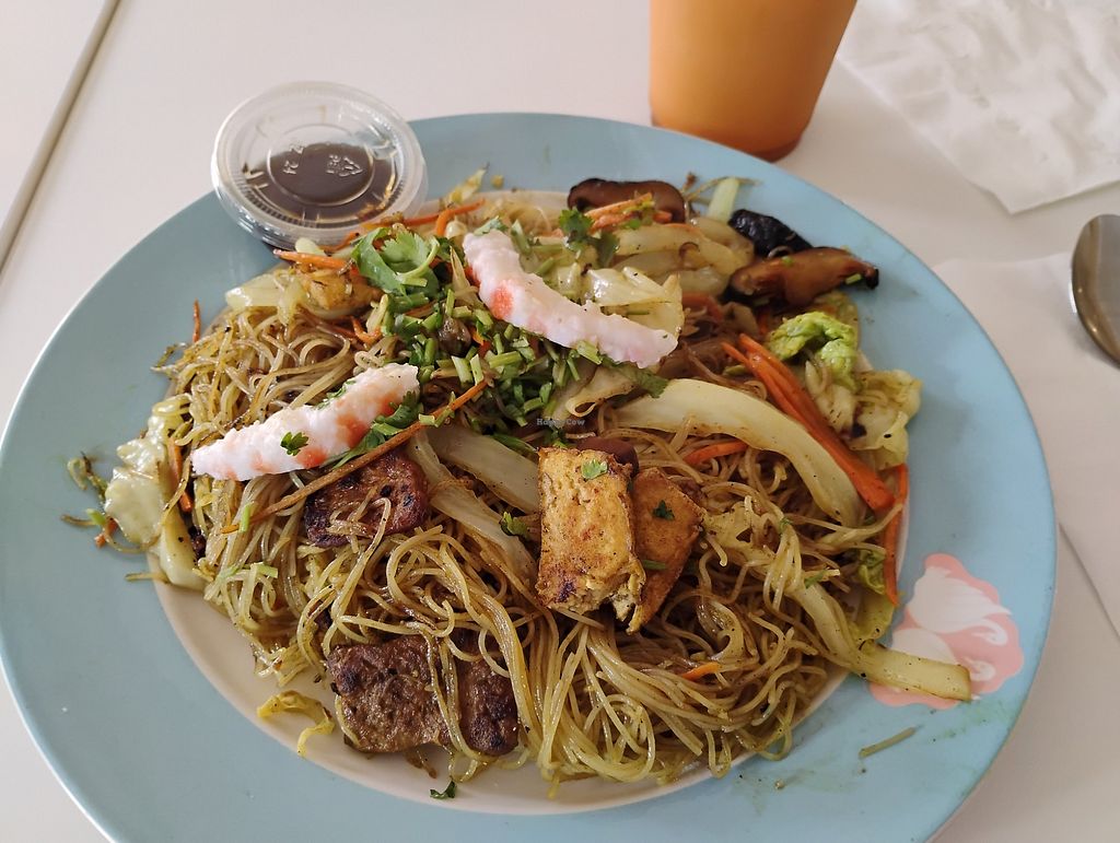 Lemongrass Noodle-Rice noodles, TVP cooked with lemongrass, onion, bea…