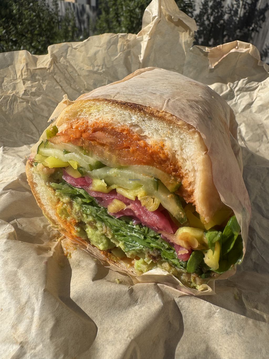 Lucinda's Deli and More has one clearly labeled vegan sandwich on their small menu and it did not disappoint. The Avo Smash was delicious and filled with fresh and tasty ingredients. The romesco sauce in particular was tasty, as were the fresh pepperoncinis, pickled onions and arugula, which was plentiful. They use Acme bread and it was the perfect size, not too doughy / filling but kept the sandwich intact. Great spot to get a sandwich and take to one of the nearby SF parks. There is a coffee bar inside as well (Third Wheel Coffee).