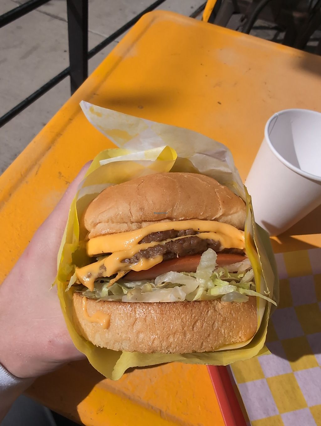 I was visiting Albuquerque and found this spot on happy cow. My partner and I split the new Mexico style burger and new Mexico style fries, and both were delicious. Quick and friendly service!