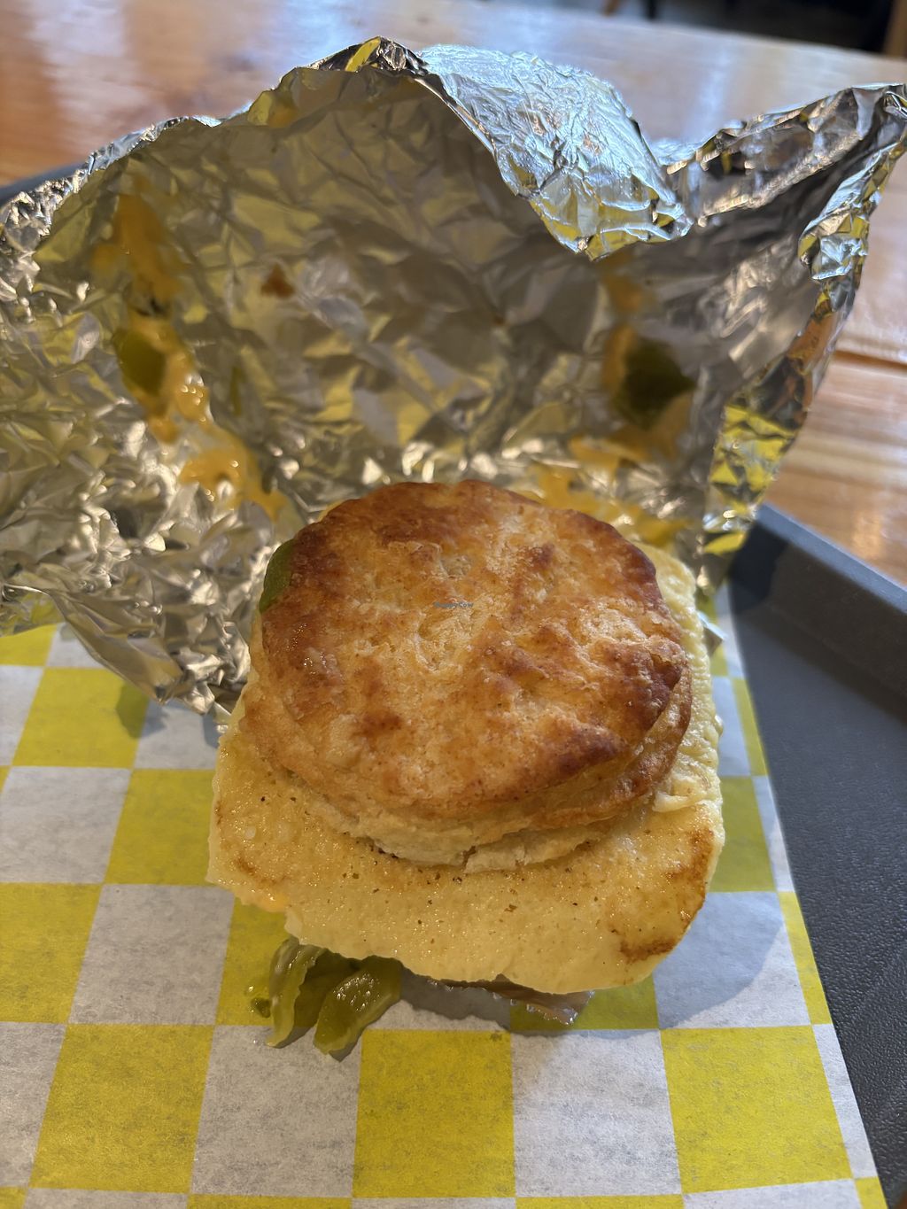 I tried the breakfast here today and I loved it! The biscuit sandwich was so delicious, the green chile really added extra flavor. Do not miss out on the breakfast here!!
