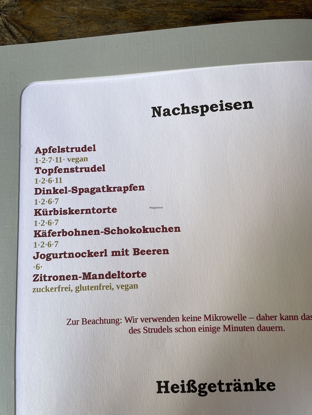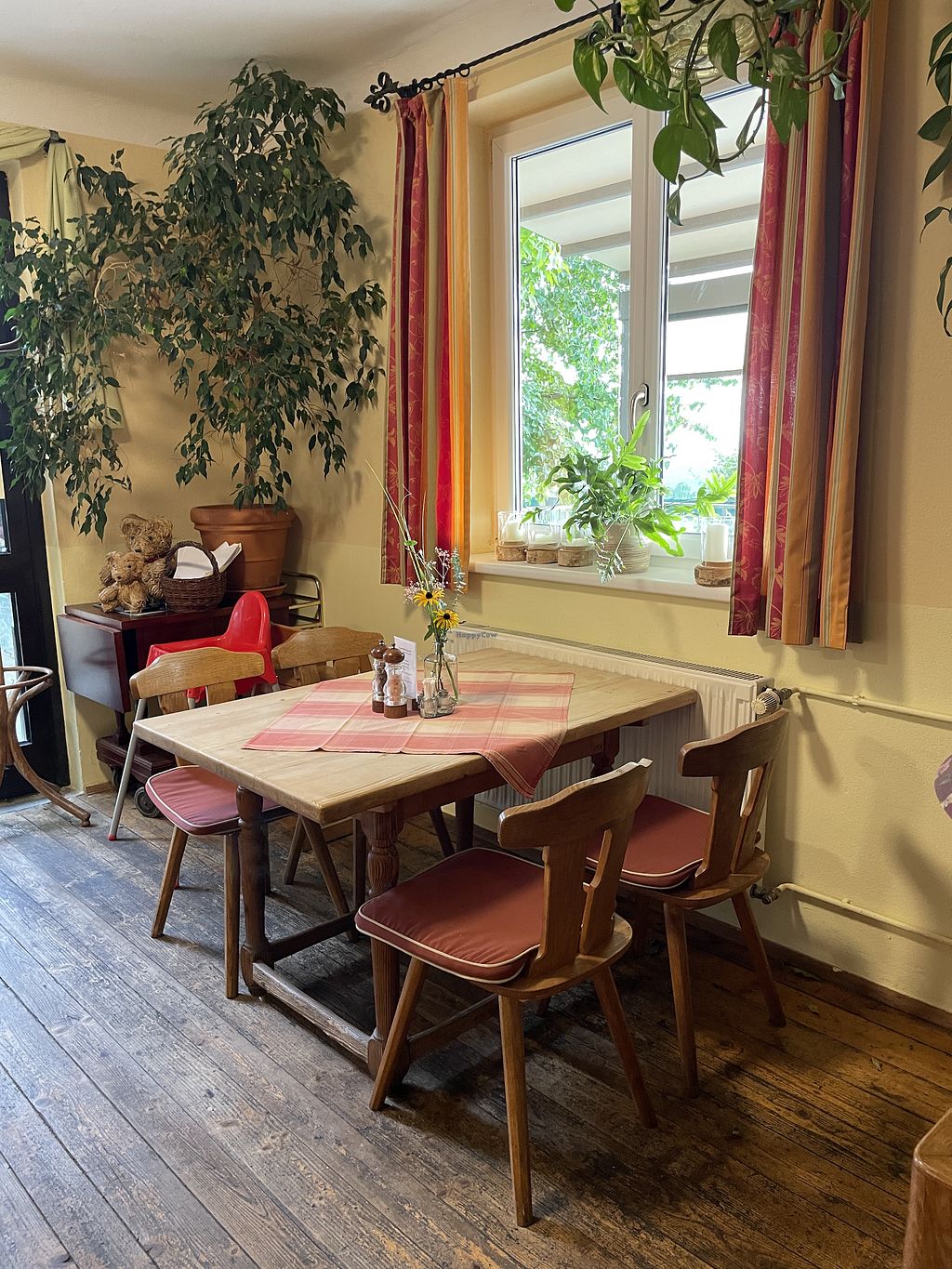 Serves meat, vegan options available. Serves traditional food with a focus on local organic ingredients. Many vegetarian choices can be made vegan upon request. Has vegan cakes. Open Wed-Fri 12:00-22:00, Sat 11:00-22:00, Sun 11:00-20:00.