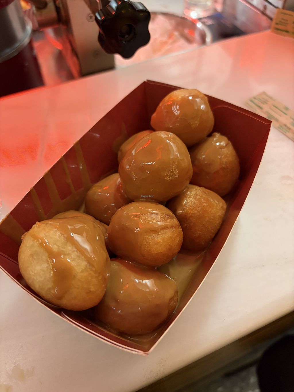 Loved the dough balls, they were so good! I got the bitter chocolate topping. I am glad there was a way for vegans to try this traditional Greek dessert.