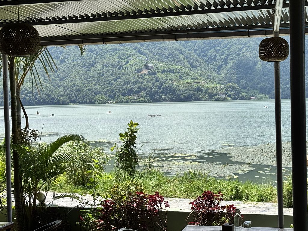 A wide selection of dishes - all vegan. Burgers, pizza, Asian dishes, salads, breakfast, and amazing deserts. All with a view of Lake Phewa and a chill vibe.