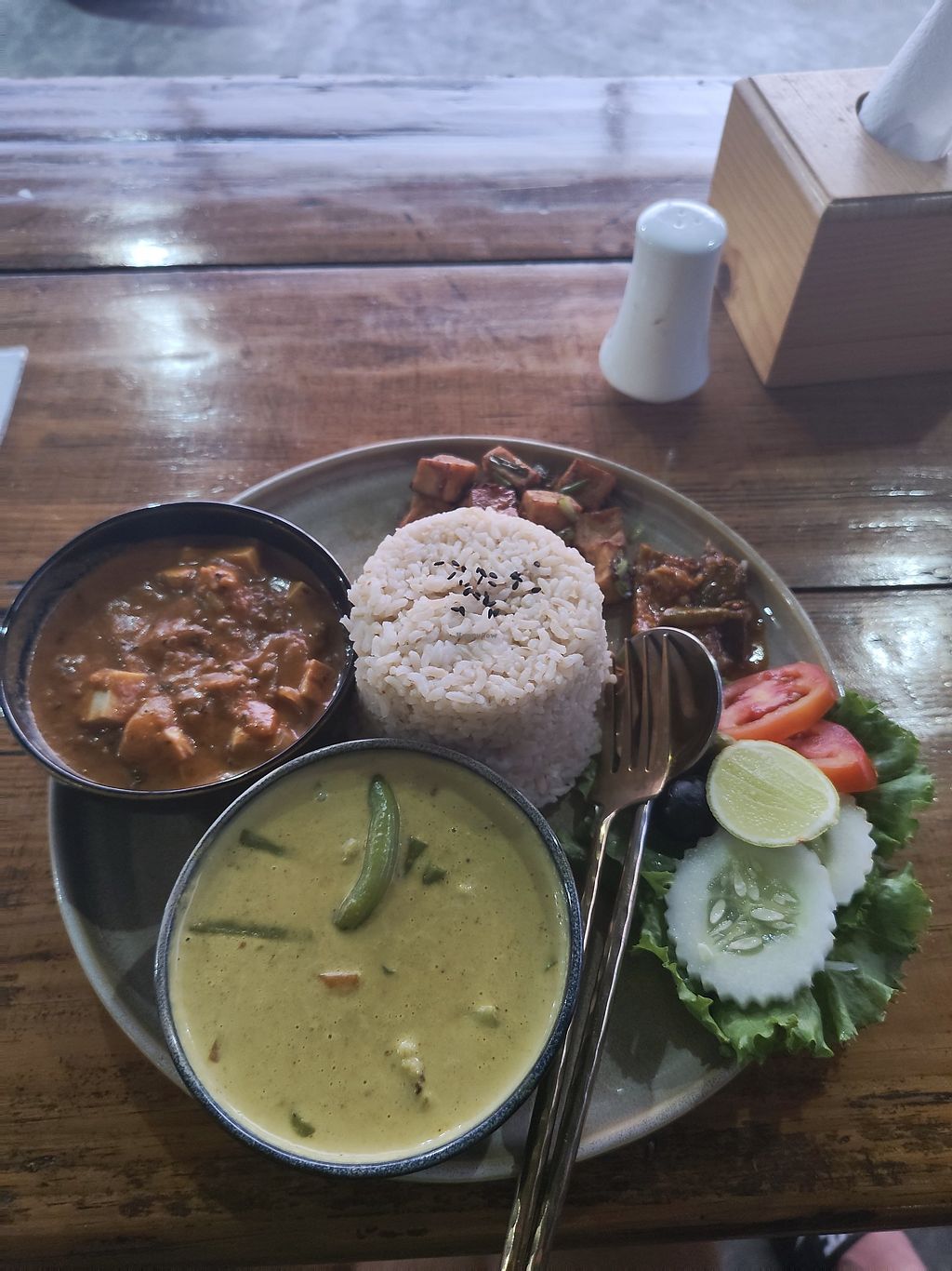 Cons: Bit pricey, Lower on veg than menu description suggested, Salad with no dressing (typical for Nepal though)