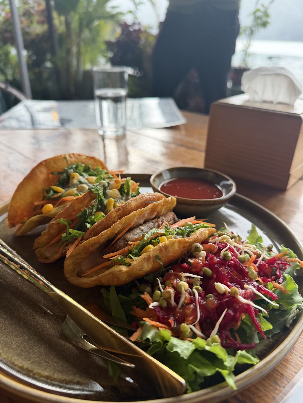 We went there for breakfast and really enjoyed the food! It’s great to have a fully vegan restaurant at the lakefront. Plenty of seating options at chairs and tables, the ground with low tables, or in the garden. Clean restroom as well.