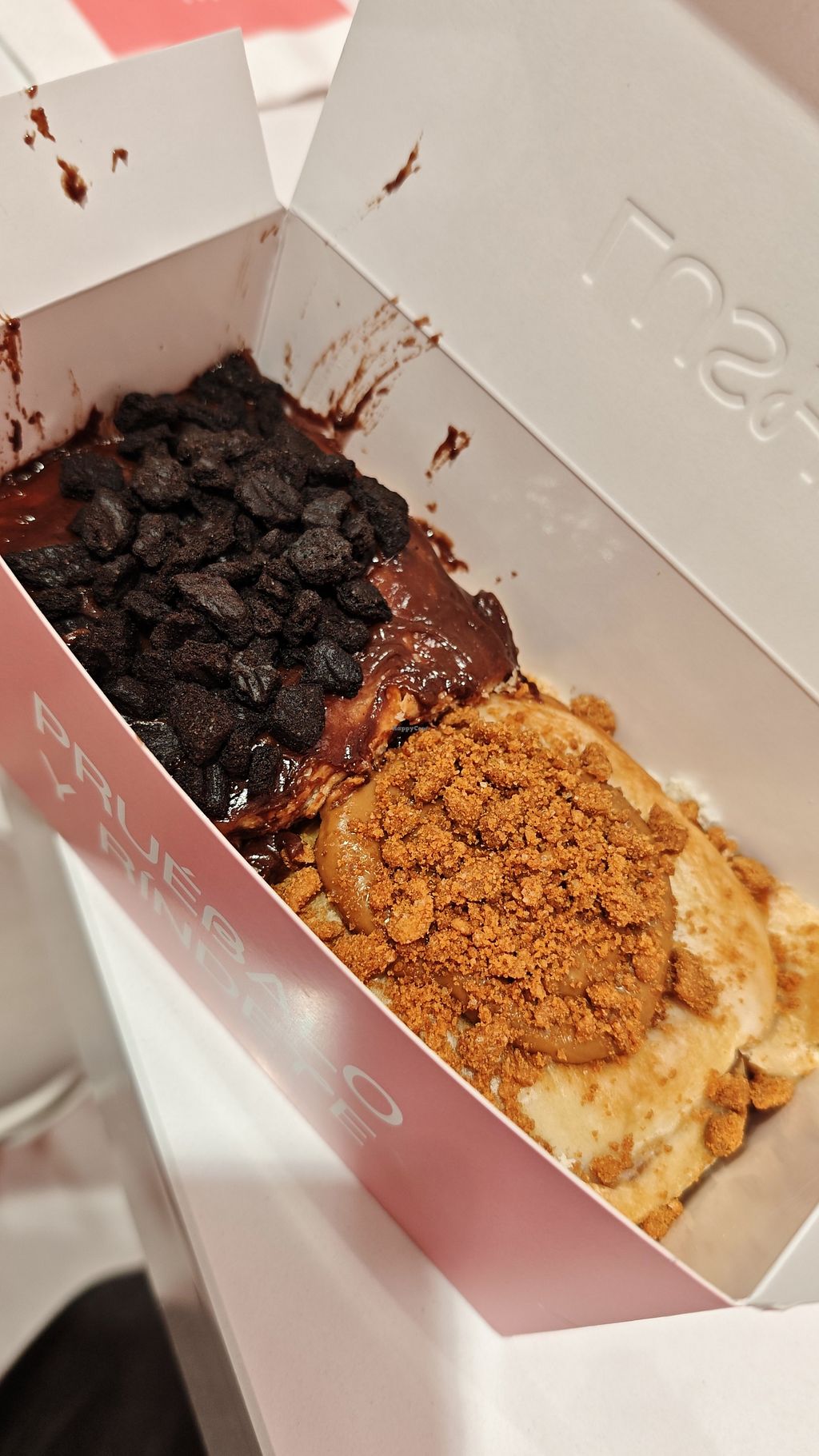 We tried the classic, the blueberry and the apple flavor and were honestly amazed at the quality. I wish it was more clearly labelled on the shop but the quality and the amount of vegan options is amazibg. We will be back often.