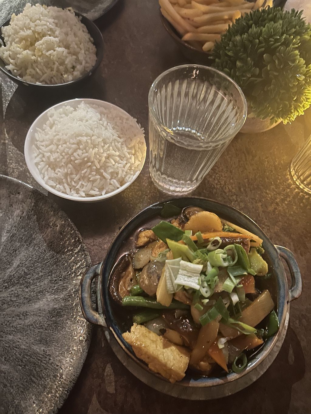 We called ahead to make sure the tofu dishes are vegan (vegetarian menu) and confirmed all vegetarian dishes could be made vegan and to let the staff know when ordering. The staff were really helpful and marked very clearly on the order that it was to be vegan and made sure to let me know what sides weren’t vegan. I got the shitakee mushrooms and tofu, so tasty it was a bit like a Chinese gravy with strong soy sauce taste. The chilli and salt tofu is soft tofu so that was a bit different than most places and was good. Bit expensive but the portions were easily big enough to be shared.