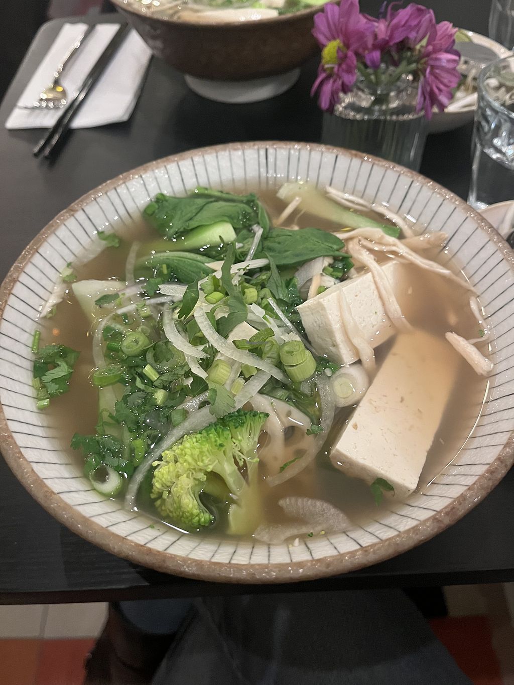 Had the tofu and trumpet mushroom bun and summer rolls. Both excellent. Great lunch.