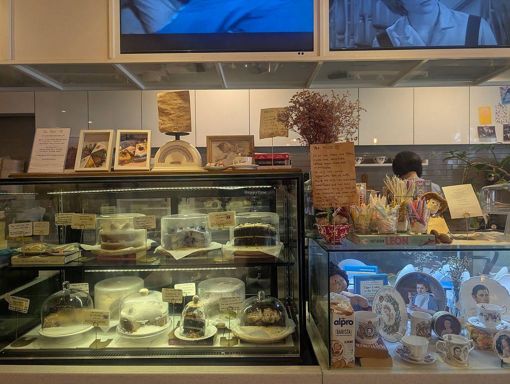 Cafe serves a selection of drinks and snacks including coffee, beer, wine, and vegan cakes and desserts such as tofu brownie and matcha doughnut. Soy milk is available for hot drinks. Open Mon-Thu 12:00pm-10:00pm, Fri-Sat 12:00pm-11:00pm, Sun 1:00pm-10:00pm.