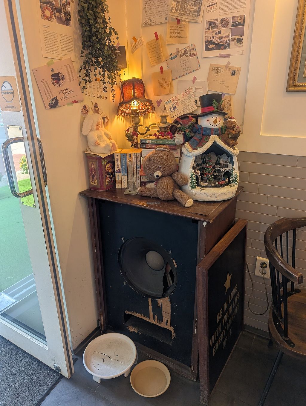 Pros: Nice atmosphere and retro vibe, Relaxing instrumental music, AC but not too cold
