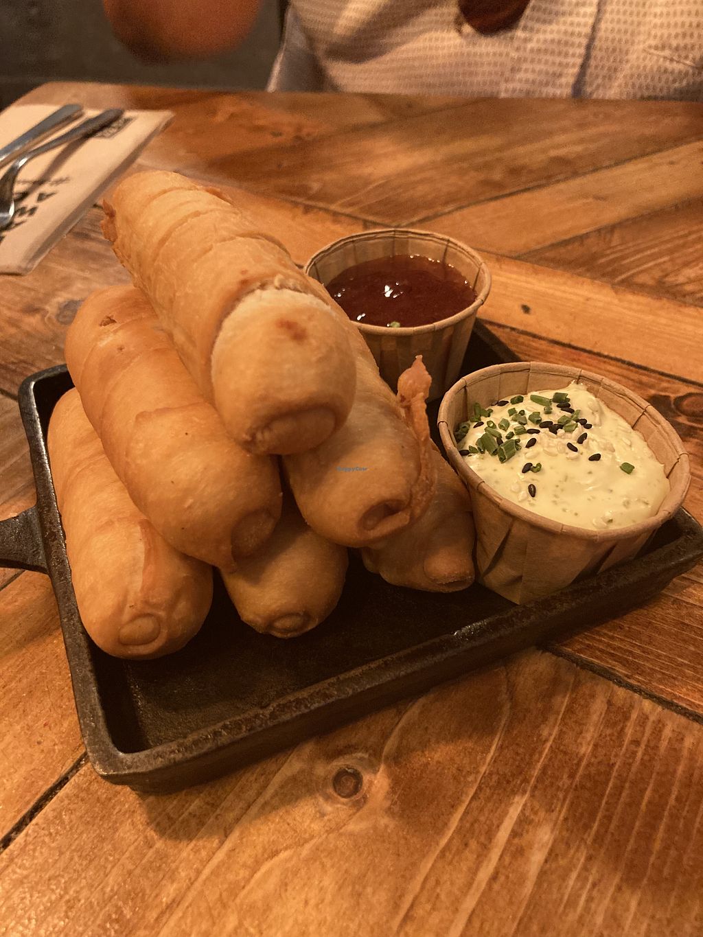 If you want some delicious greasy, vegan food this is your place! Everything we had was delicious. Highly recommend the calamari which was so like how I remember the real thing (from 20 years ago 😬) I would have questioned it if we weren’t in a vegan restaurant. The Caesar salad was also great!
