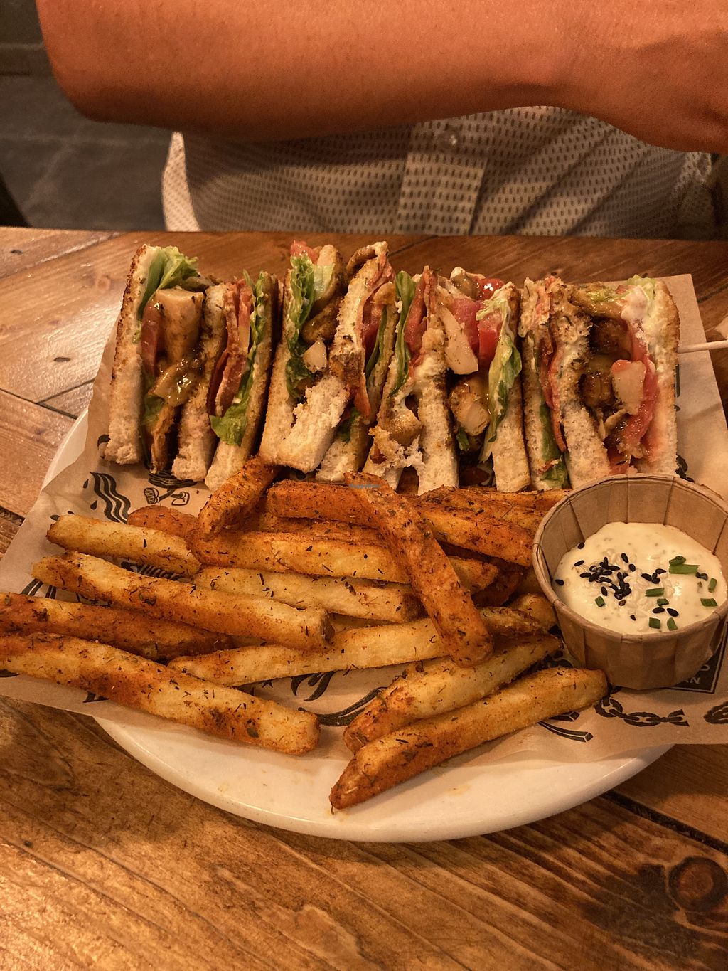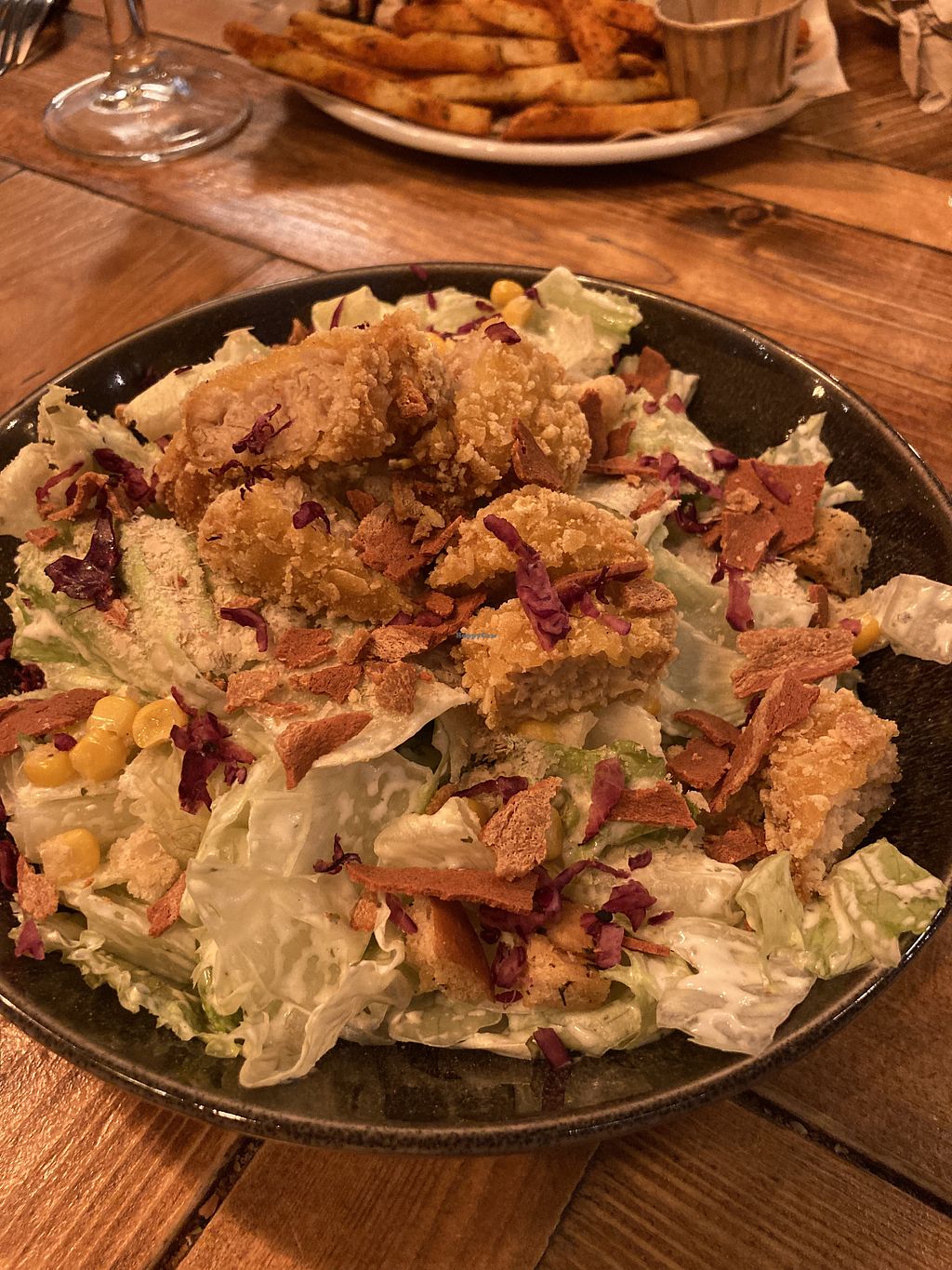 Delicious vegan chorizo tacos. Our group also had caesar salad and club sandwich and both were much enjoyed.