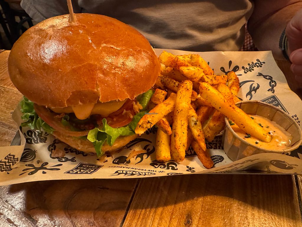 I went there with a newly met non vegan friend. We had vegan calamari and a burger each. My friend took the mad mad signature burger and was so surprised by it's taste, that she lost arguments of not being vegan. My burger with the heura patty was delicious as well. Lovely fries too. Staff is friendly and serving is fast. A place to return to.