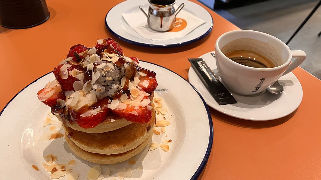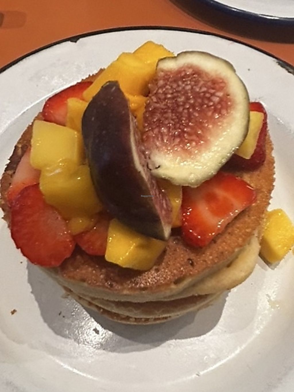 Delicious pancakes with lots of choice for vegans. The portions are big - I couldn’t finish it all. I had berries and dragonfruit… Lovely.