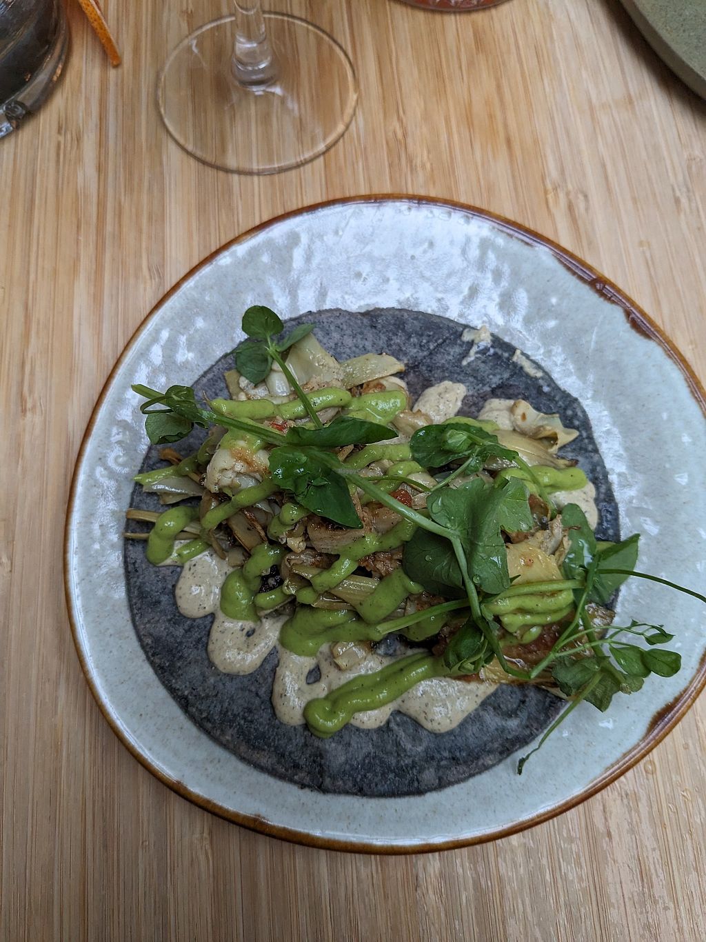 Tacos with tempura mushroom: quite good, but the ‘pork’ taco is better
