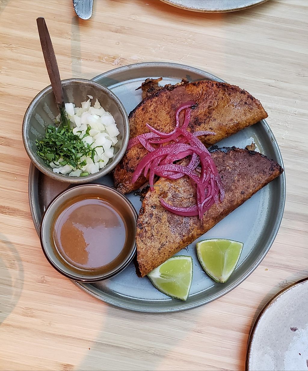 My first all vegan Mexican restaurant! Every dish was really flavorful and the margaritas were strong. My favorite was the Birria tacos. The only con is that it is very pricey.