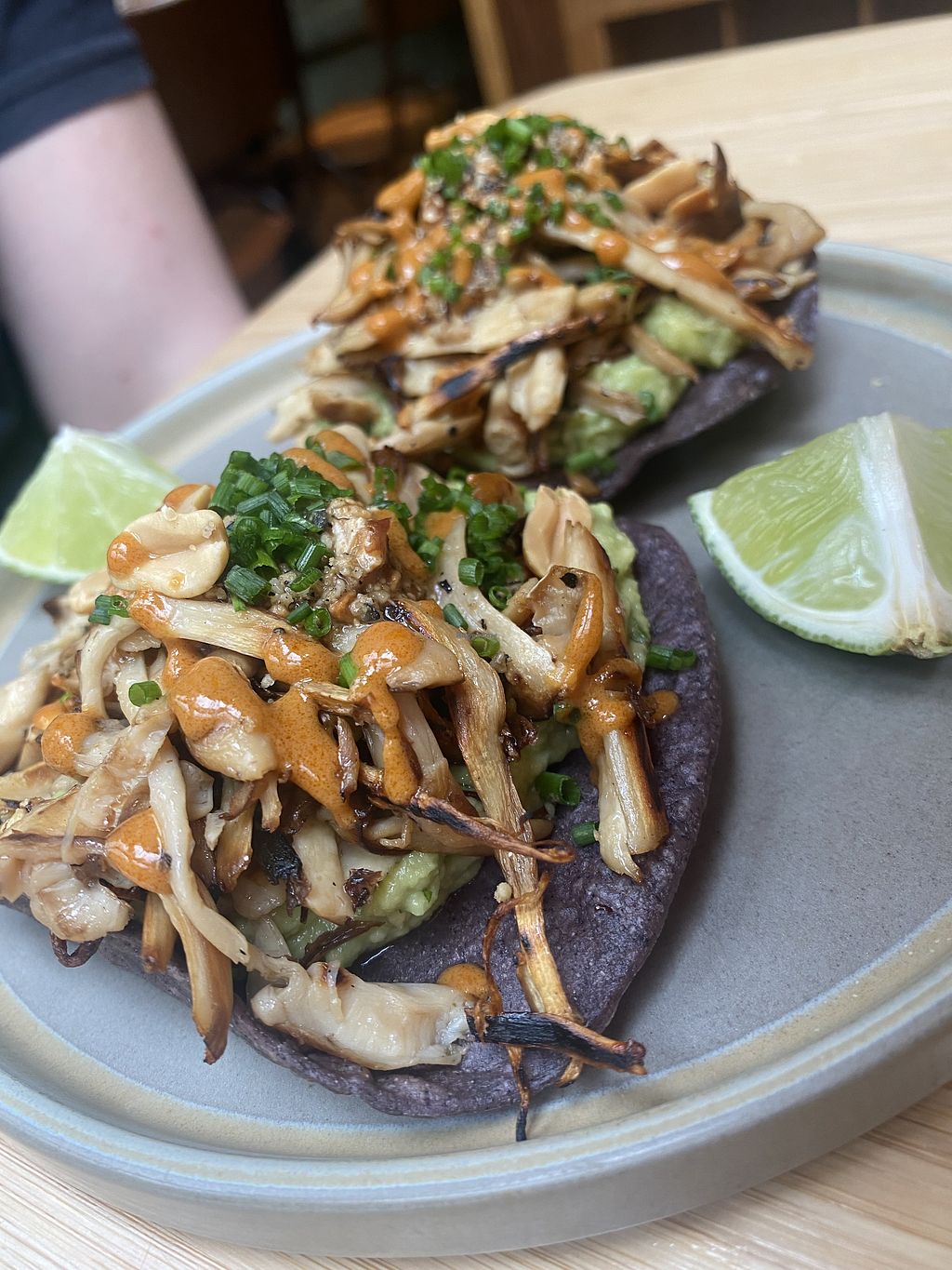 Ik had samen met mijn partner twee porties Beech mushroom tostados besteld die erg lekker waren, maar we hadden verwacht dat de porties wat groter zouden zijn. Later hebben we met z'n tweeën een portie Nacho mama besteld wat gelukkig qua portie wel genoeg was voor ons allebei. Als dessert hadden we allebei de Mole Rosa besteld die tevens erg lekker was. Helaas heb ik geen foto's gemaakt 🥲