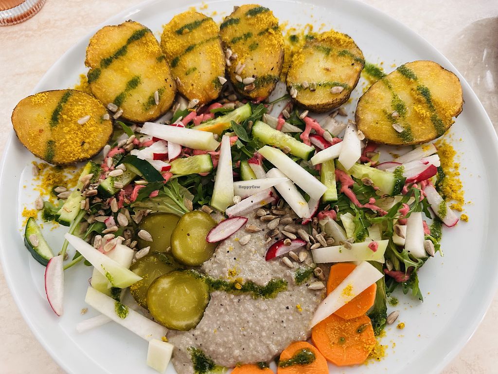 The food was amazing!! One of the best Restaurants I have been to. The plates were arranged with love and the taste is soooo good, it made me so happy😄would come back to Poznan Just to eat Here and my husband Loved it, too (He is Not a vegan). Also the owner has such a welcoming and positive Energy, you can really tell that she put Heart into the Restaurant and the food💗I want to give 10 stars