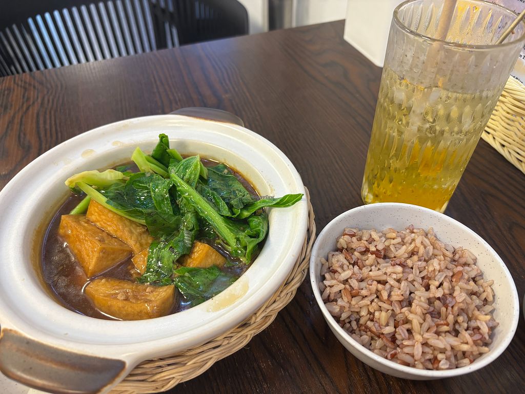The new venue is very different from their previous address in Geylang. The new place is a resto with an extensive menu. There's plenty of vegetable dishes on the menu and not just starch, mock meat and sauce. I had Bak Kut Teh with brown rice. It was delicious.