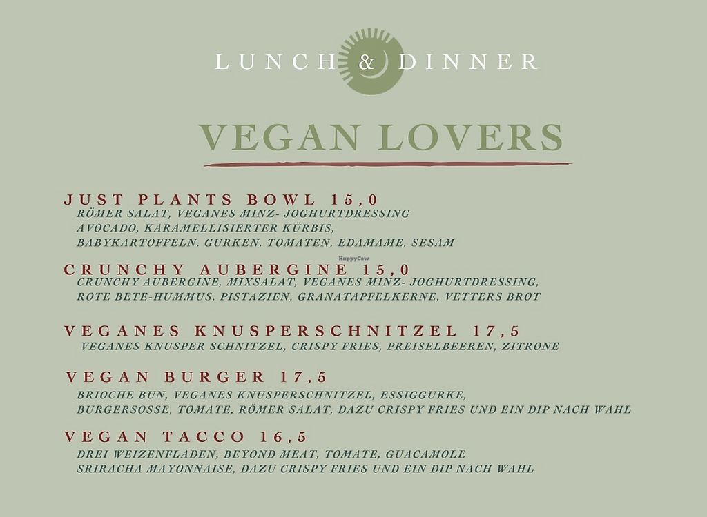 Lacto Ovo Western Beer/Wine Take-out European Breakfast Non-veg Serves meat, vegan options available. Restaurant and bar offering clearly labeled vegan bowls, tacos, burger and schnitzel. Open Mon-Fri 09:30-23:00, Sat 09:00-23:00, Sun 09:00-22:00. More
