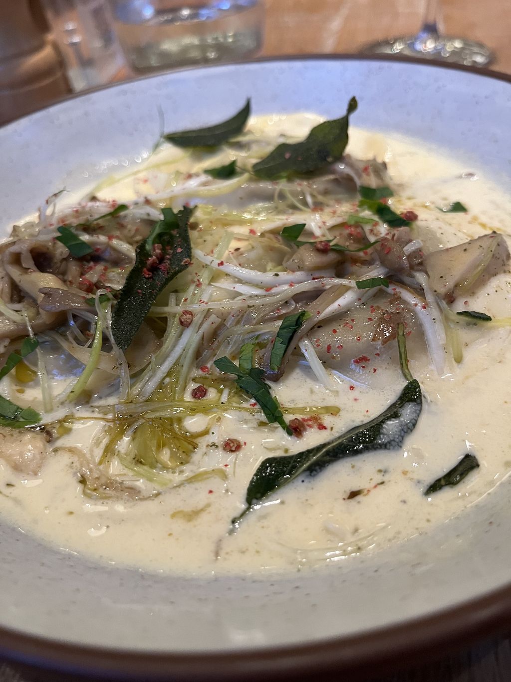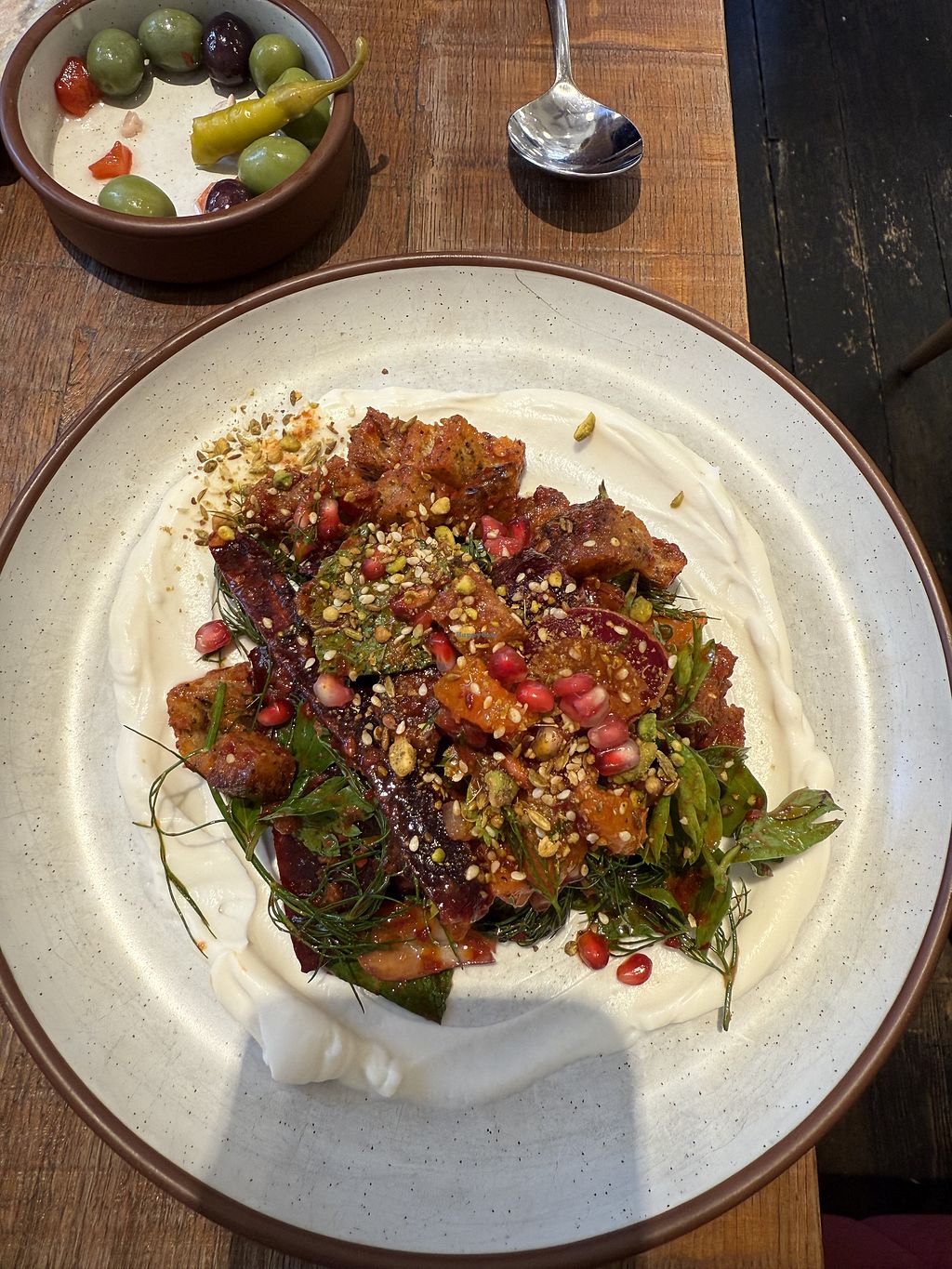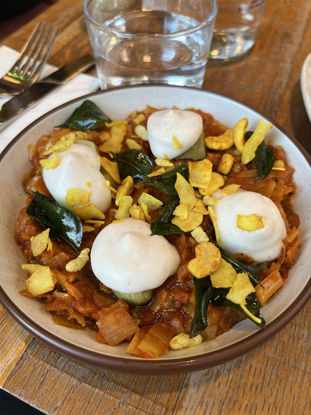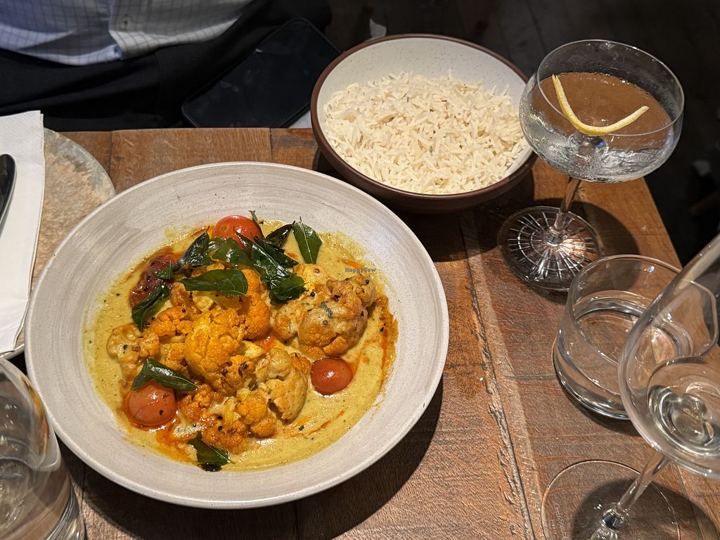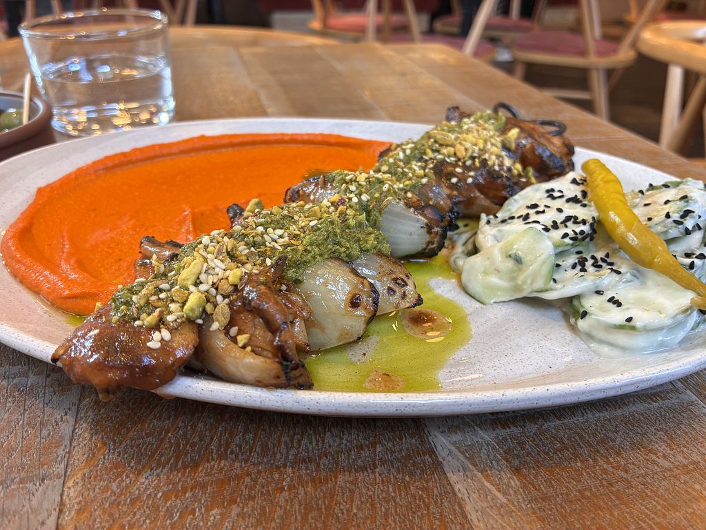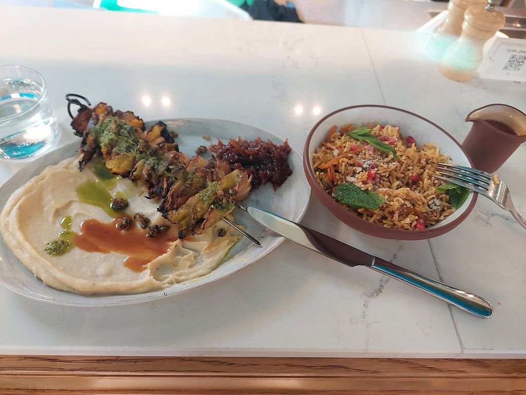Incredible food with lots of different flavors and textures. The menu changes periodically but I ordered the oyster mushroom & hispi skewer with celeriac purée, the saffron carrot pilau, and for dessert the pistachio tres leches. All of them were superb, I will be back the next time I'm in London.