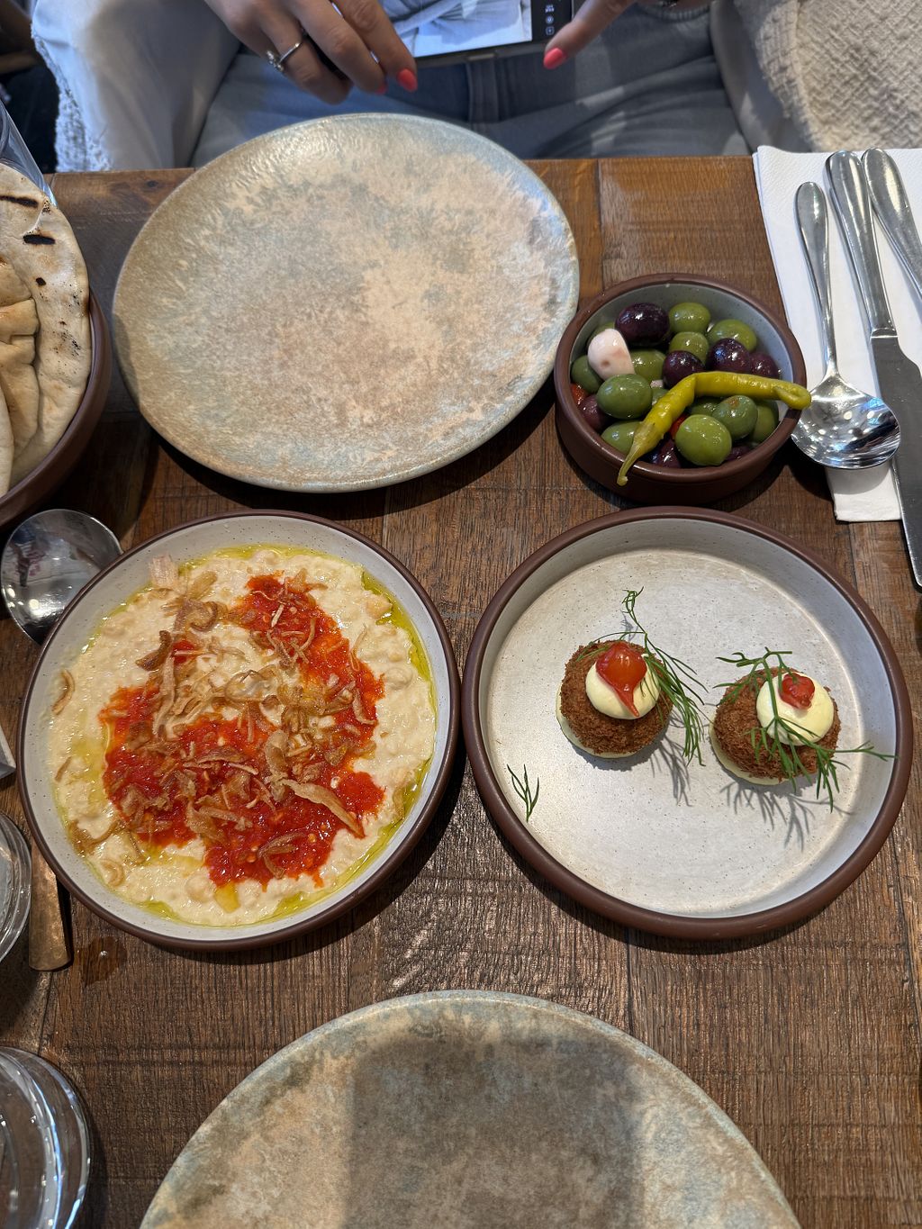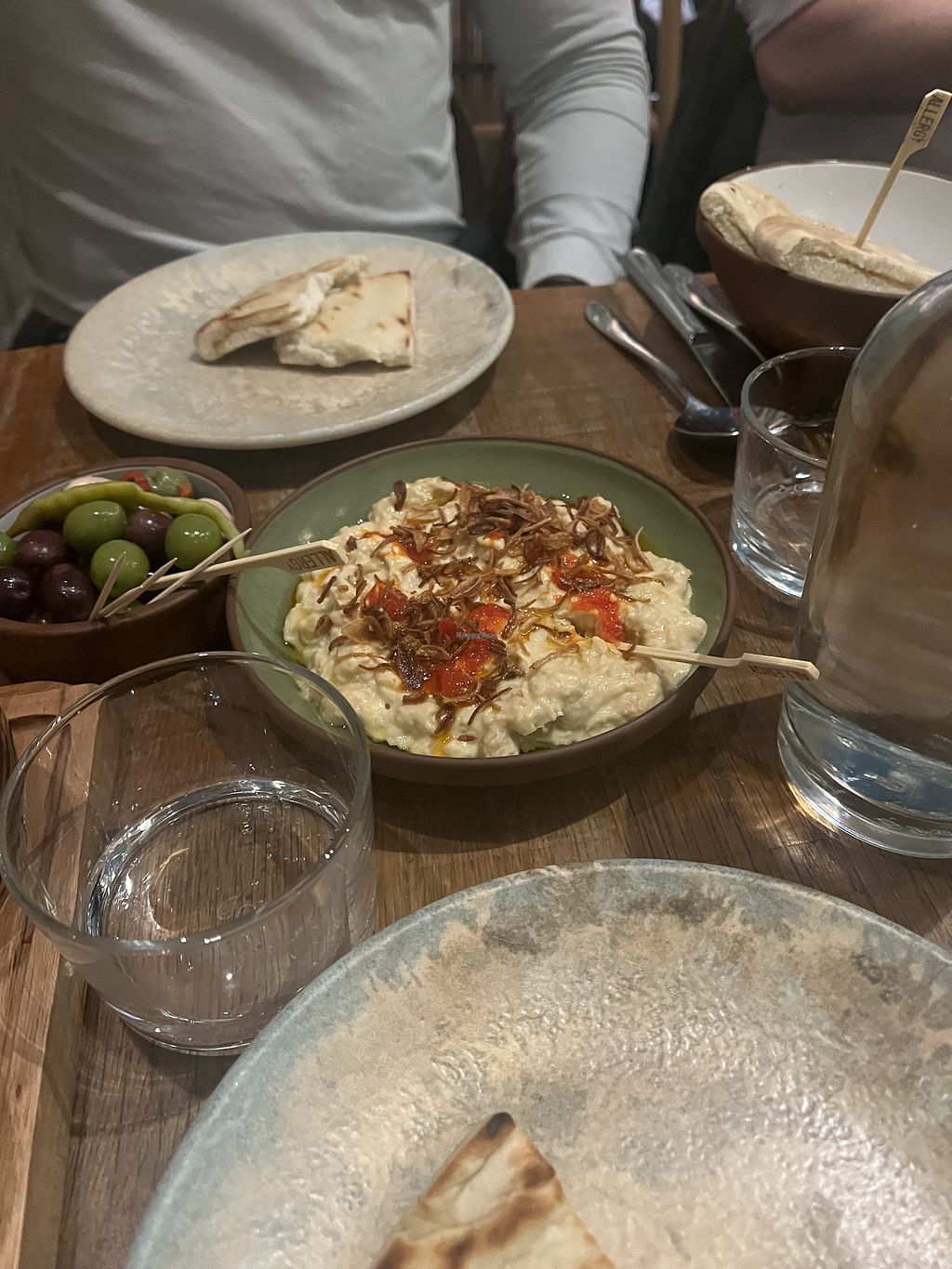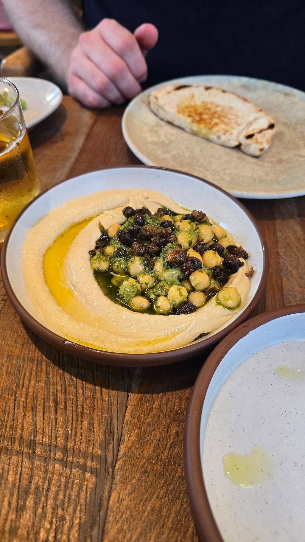 Perfect lunch venue escaping the hustle and bustle of the market. Started with the bread and hummous, toasted to bring out the flavour and accompanied by a lovely oil dressing.