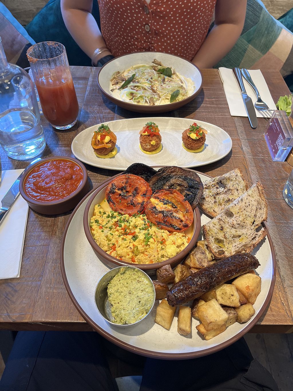 Food is great, nice portions on the full english. Ravioli was super tasty, amazing Bloody Mary cocktail with tequila.
