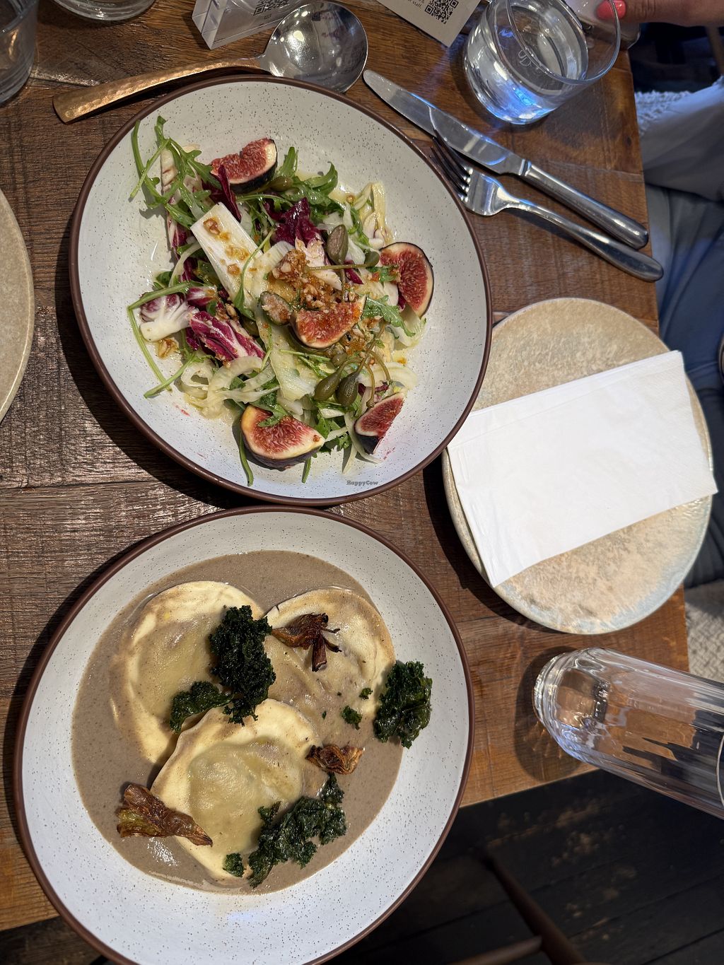 Pros: Mushroom ravioli, Potato hash brown , Sourdough