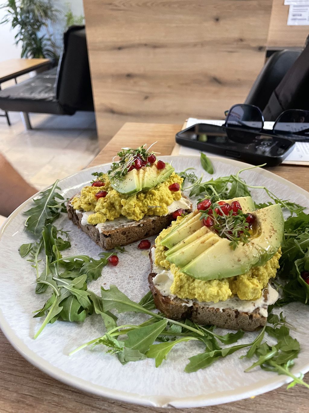Fantastic veganized Czech mushroom soup and very good avocado toast with tofu scramble, also good apricot cake
