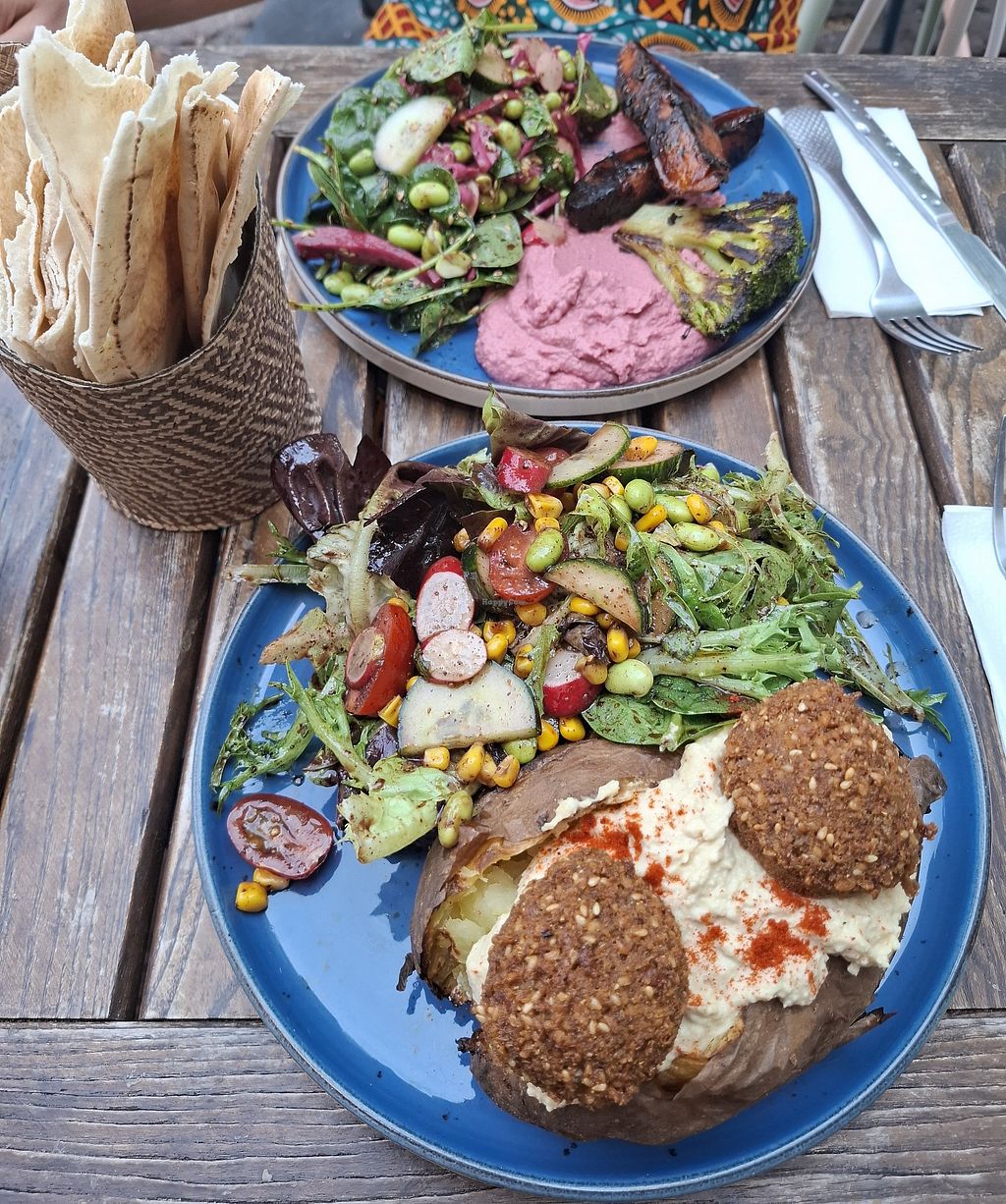 Serves meat, vegan options available. Lebanese restaurant with a terrace. Offers vegan choices including kumpir (baked potatoes), Lebanese wrap with hummus and other mezze options.