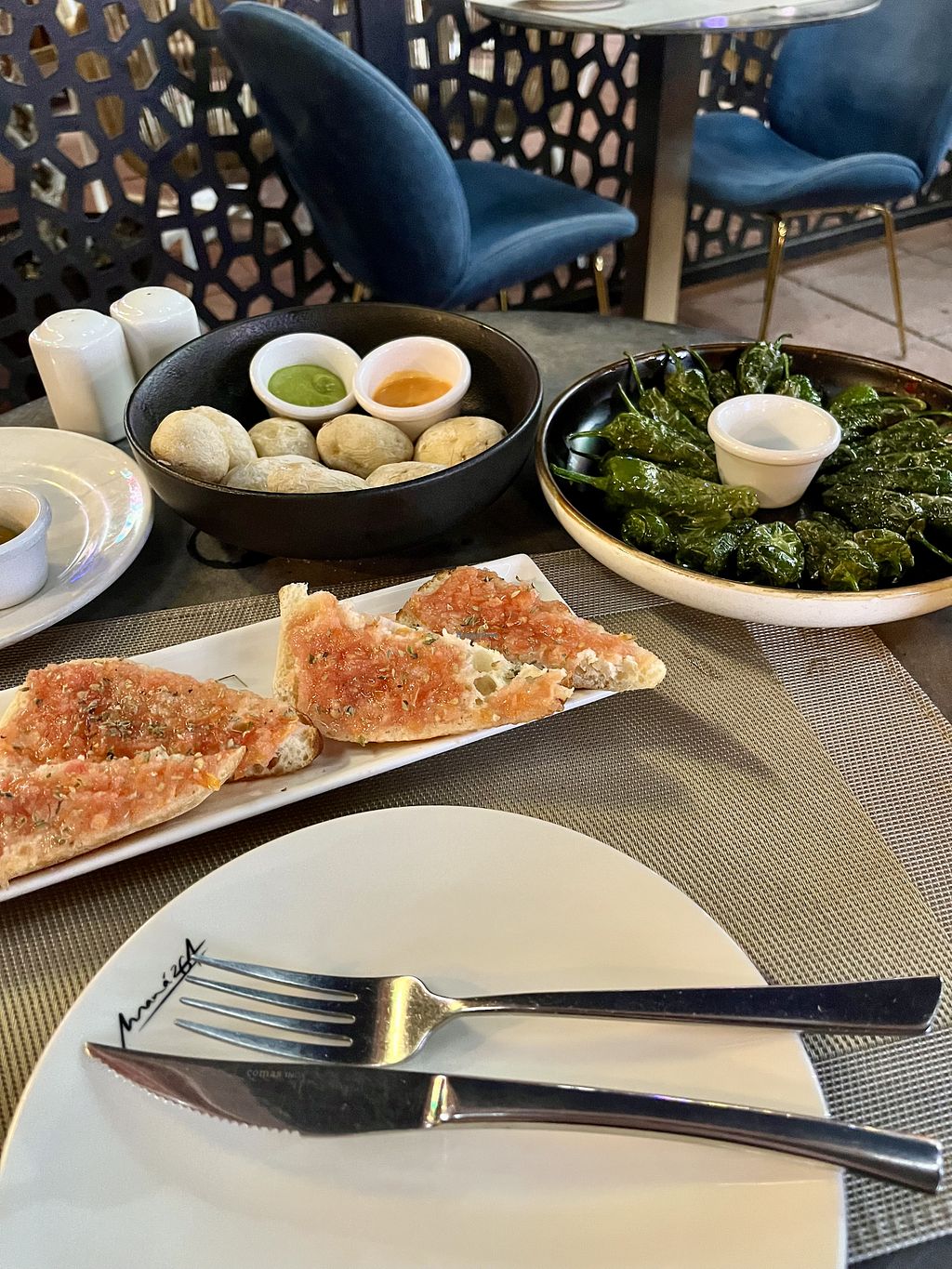 Read moreFrom the tapas menu, bread with tomato, oregano and olive oil, Canarian potatoes, which came with red and green sauces and