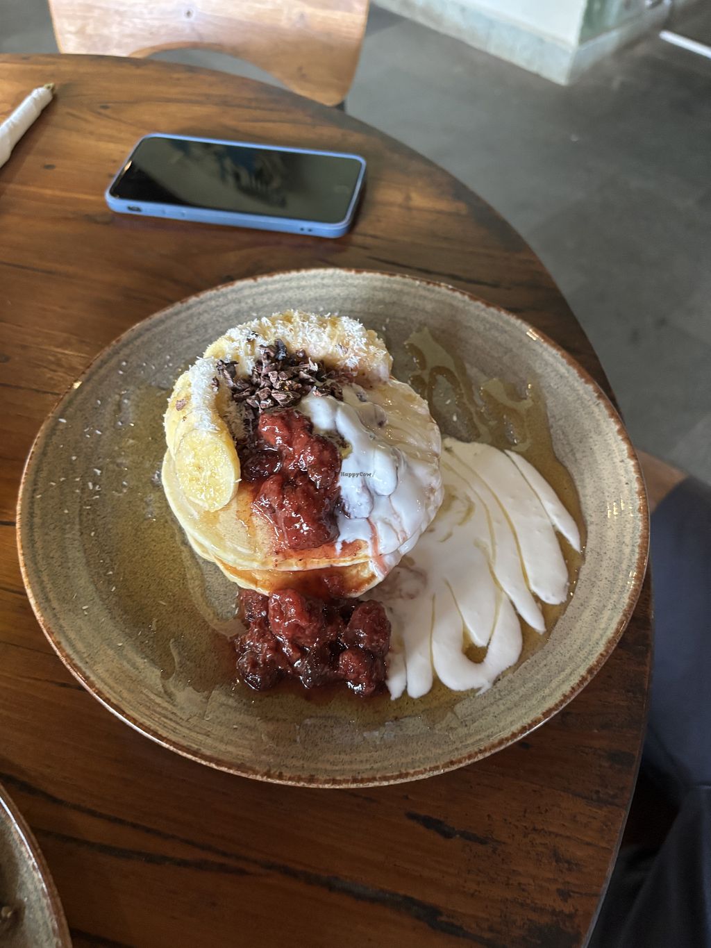 The second day I went there for breakfast and tried the happy pancakes. It was such a bummer to find out, that they weren’t made freshly. They come out of the fridge and not soft at all. Unfortunately the coconut tougher wad sour and I had a tummy ick afterwards. Too bad.😒