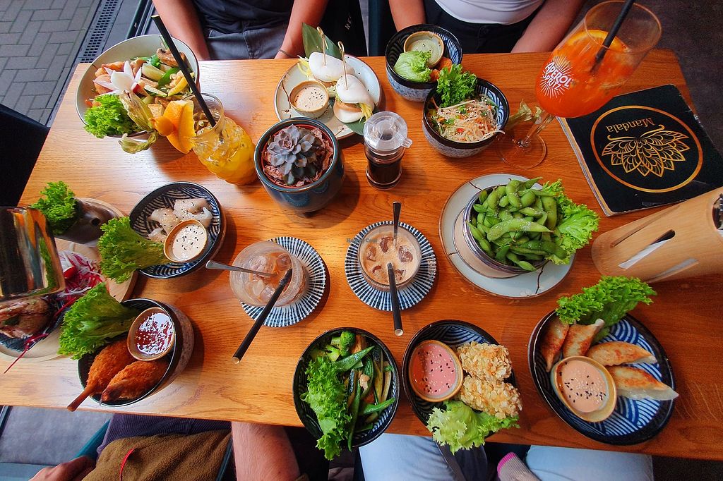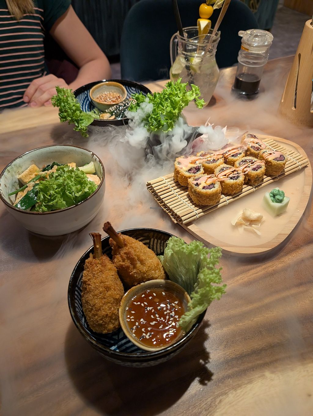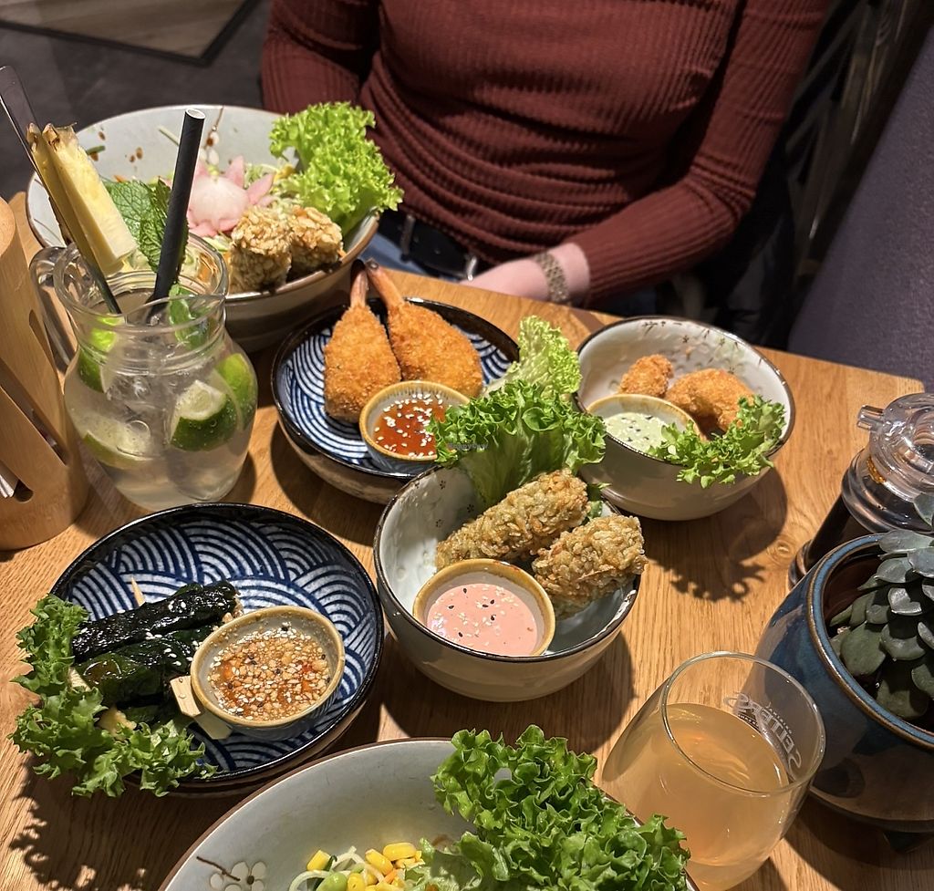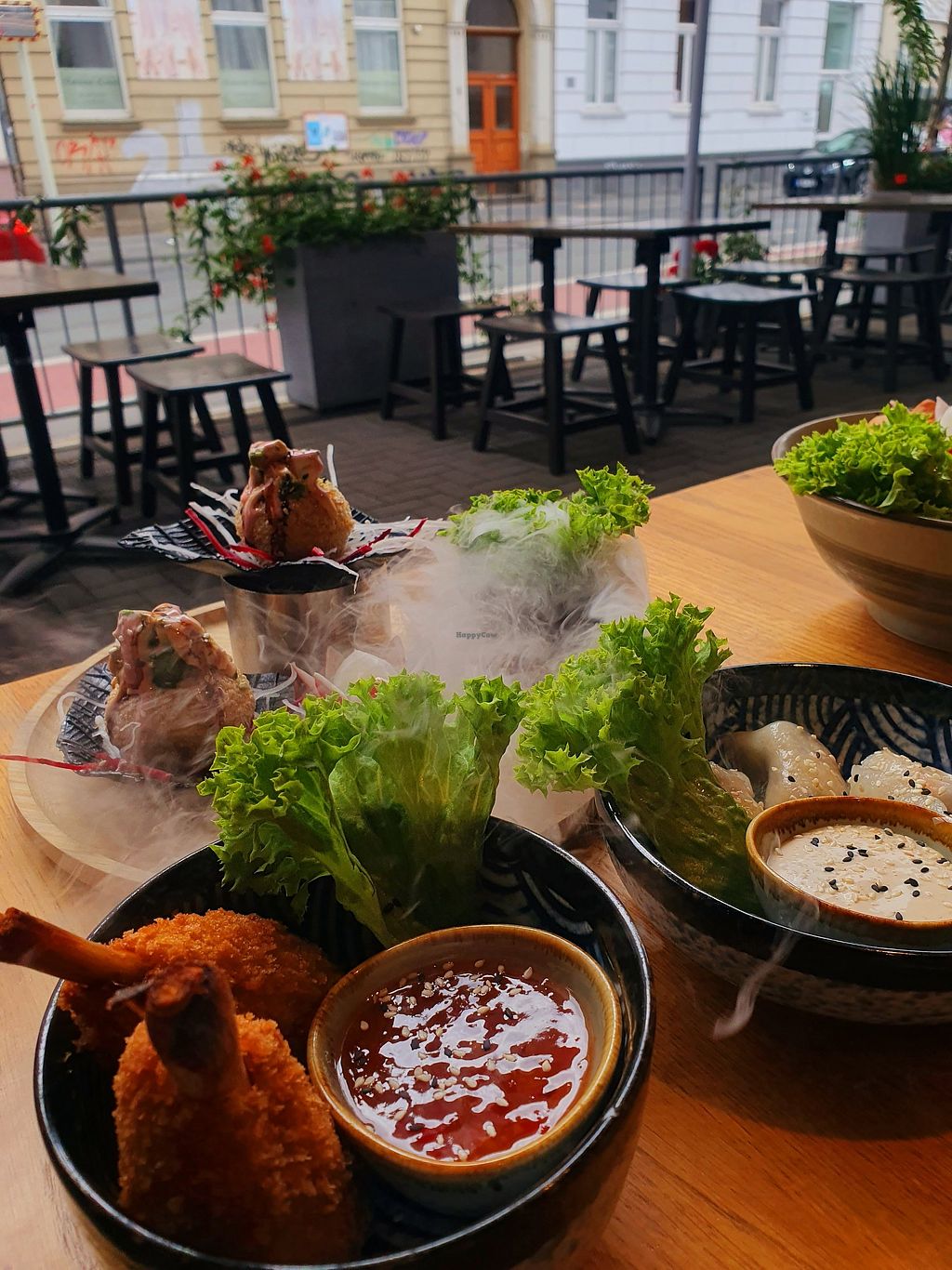 Delicious, especially the vegan shrimps. Many different small dishes, perfect to share.