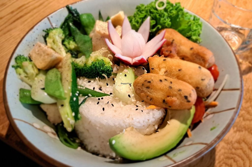 Fully vegan restaurant with Asian fusion kitchen that serving sushi and Vietnamese cuisine. Open Tue-Sun 12:00-23:00. Closed Mon.