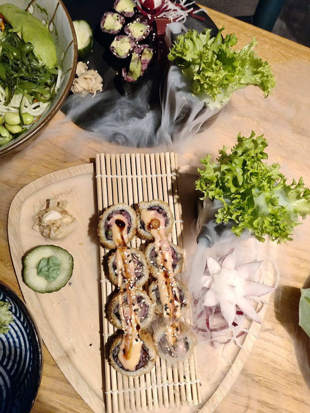 The extra sushi was a good idea as well, they put some liquid nitrogen (I think) so that you get fog on the table and it looks really cool!!