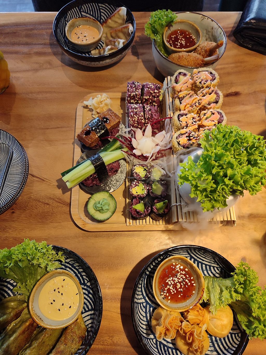 Alles war super lecker. Besonders das Sushi und die Gyoza