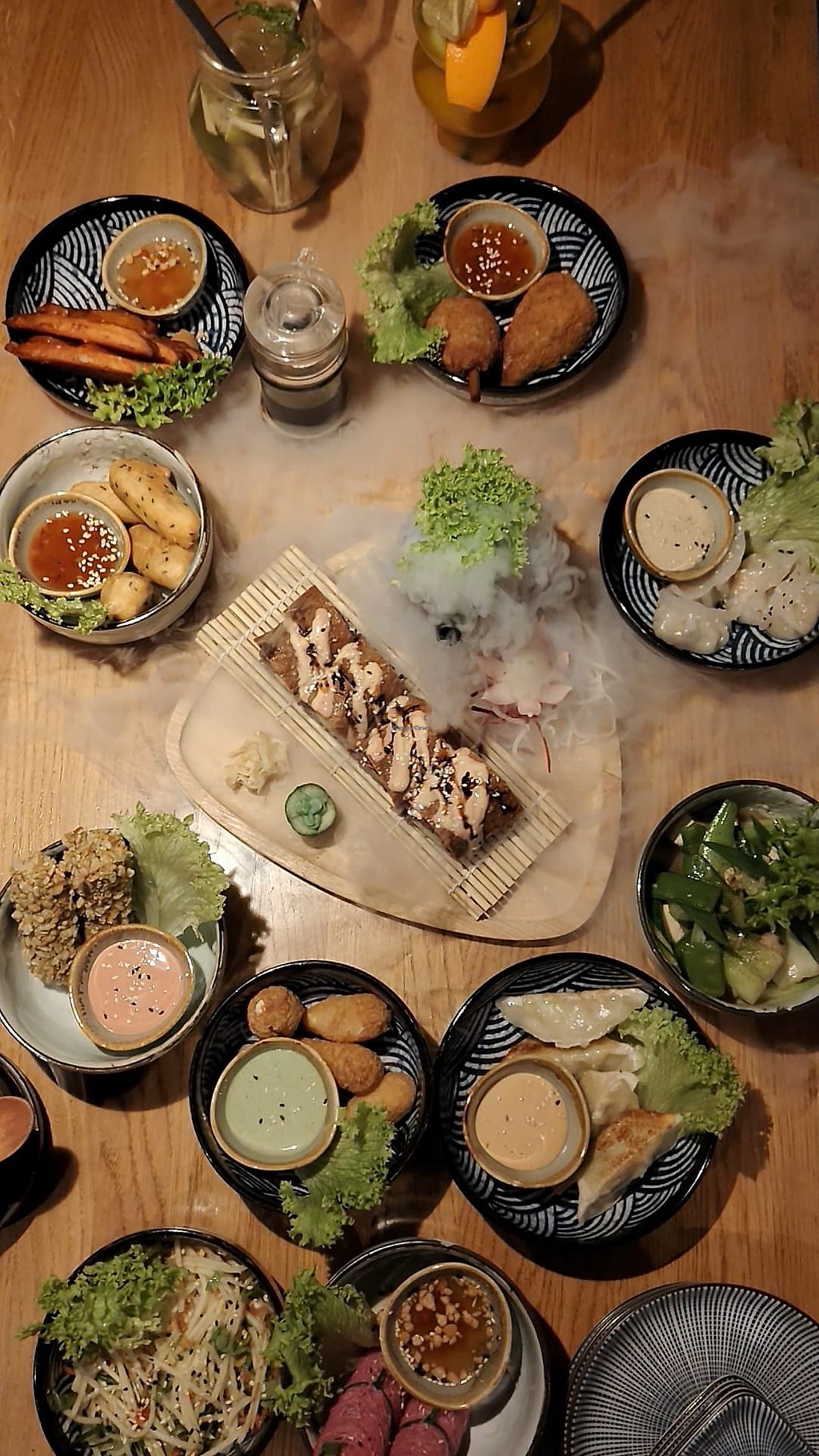 Good variety of small Asian dishes just to taste. I recommend fish tartar.