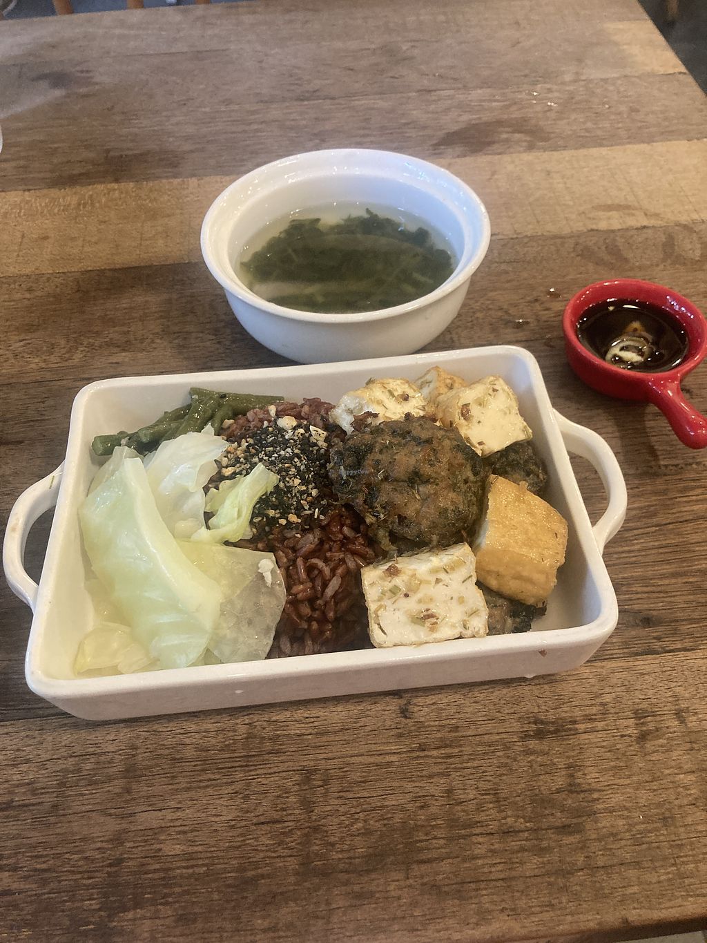 I had a seaweed balls, tofu and rice dish and it was very delicious. Recommended by the staff it was a good choice. For a lover of seaweed it will not disappoint.