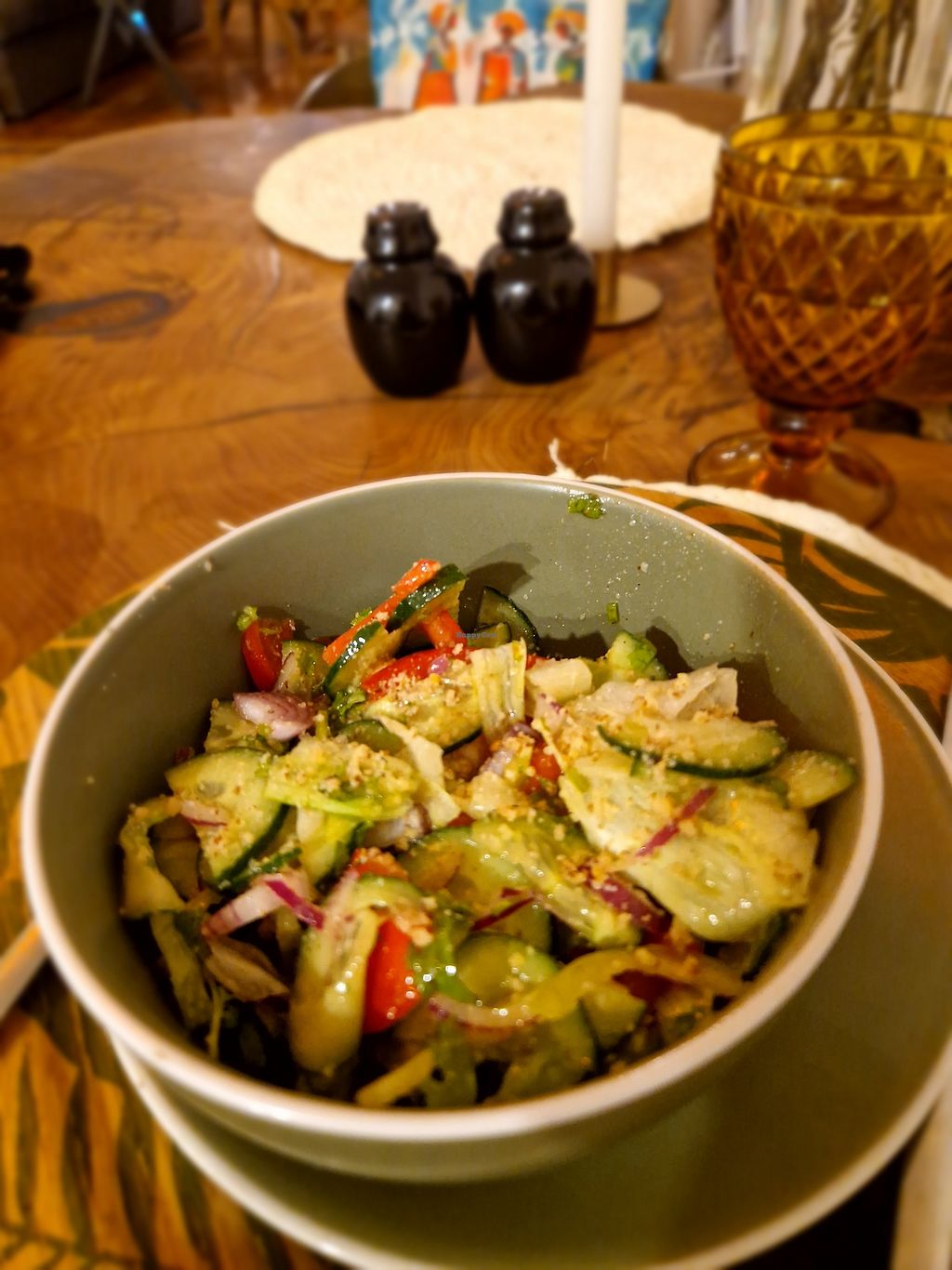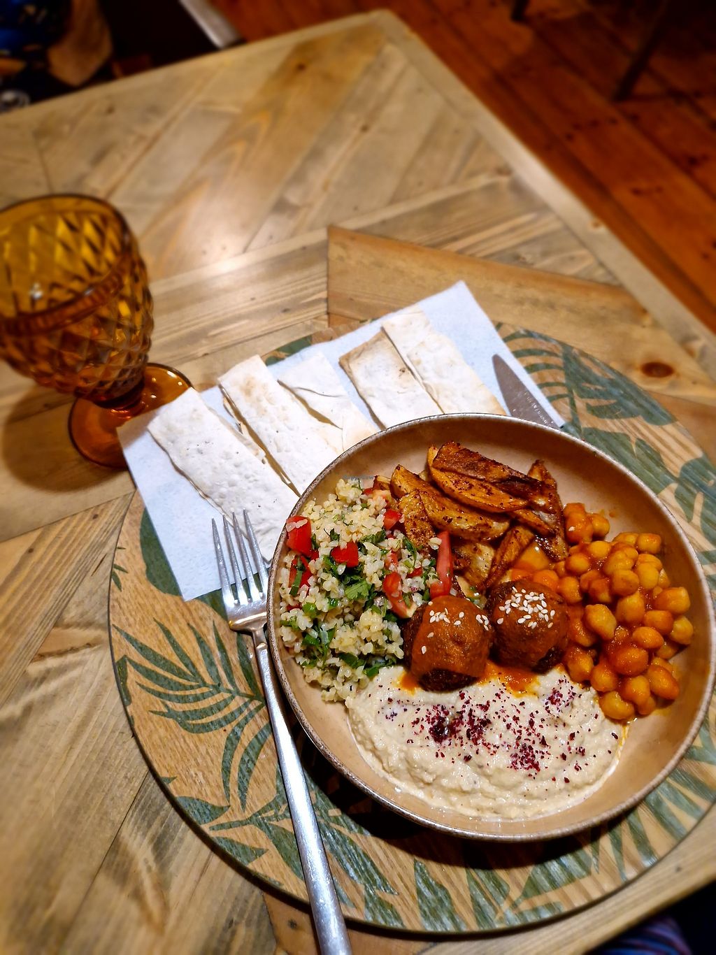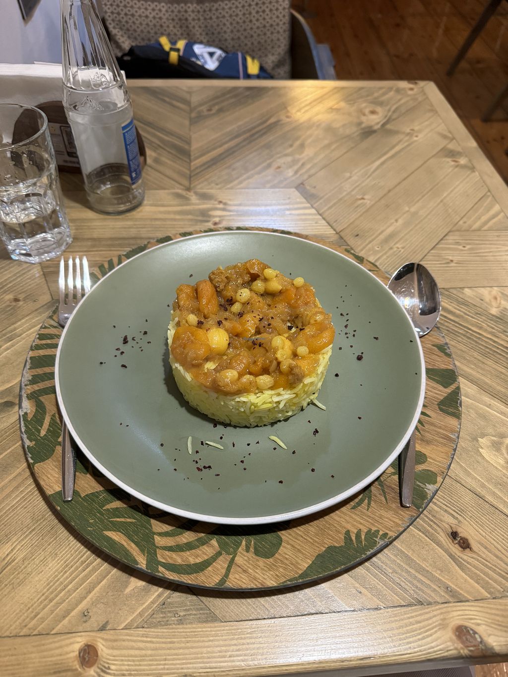Dolma, Noodles with Mushrooms and vegetables, and Fries