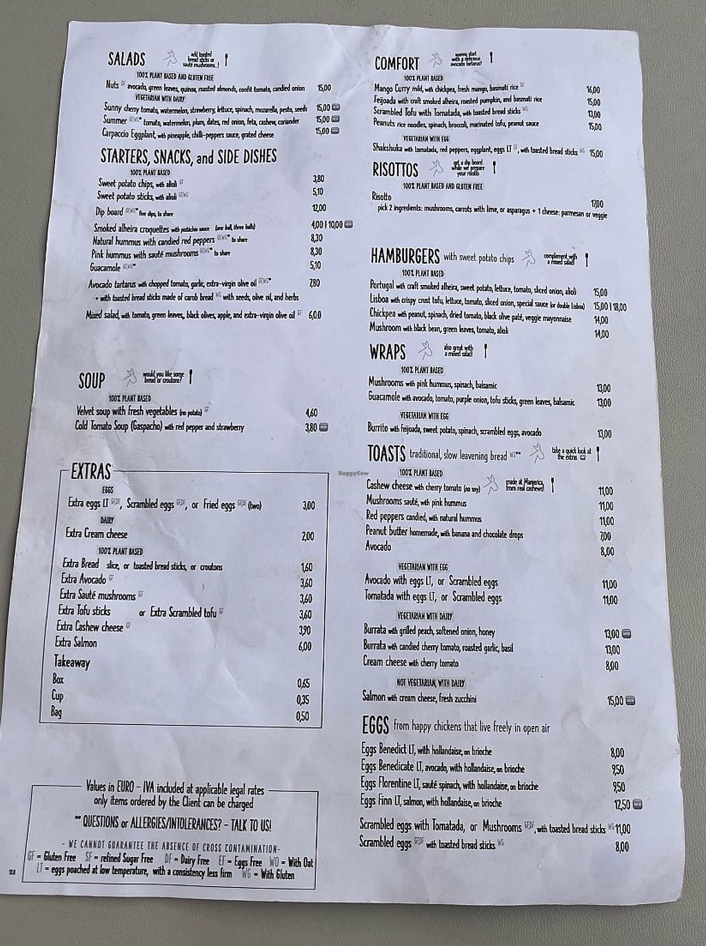 We had a breakfast there. You can find the vegan, gluten free, vegeterian options, and some allergy information clearly marked on the menu. Tried the vegan pastel de nata, and mushroom wrap and toasts with coffee. Overall I think the food and the location is good for the price you pay. The outside seating area can be improved (chairs, tables etc). The staff is friendly.