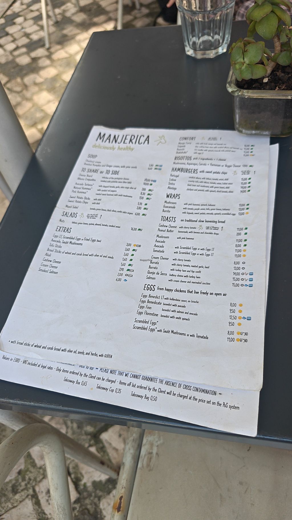 Friendly staff and very quick service. Menu in Portuguese and English. Serve a variety of breakfast and lunch items, such as wraps, toast, pancakes etc as well as hot and cold drinks.