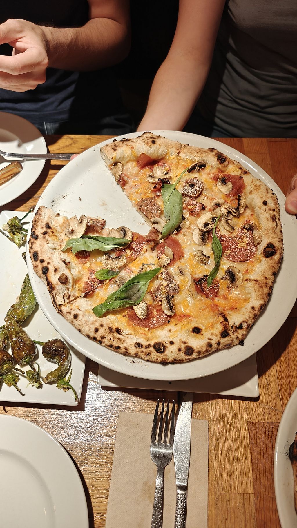 Ordered two different pizzas and both had very little cheese. The crust was very light and slightly burnt which may have been good but combined with the space cheese, it felt like we were eating crackers. The vegan ham was very tasty though!