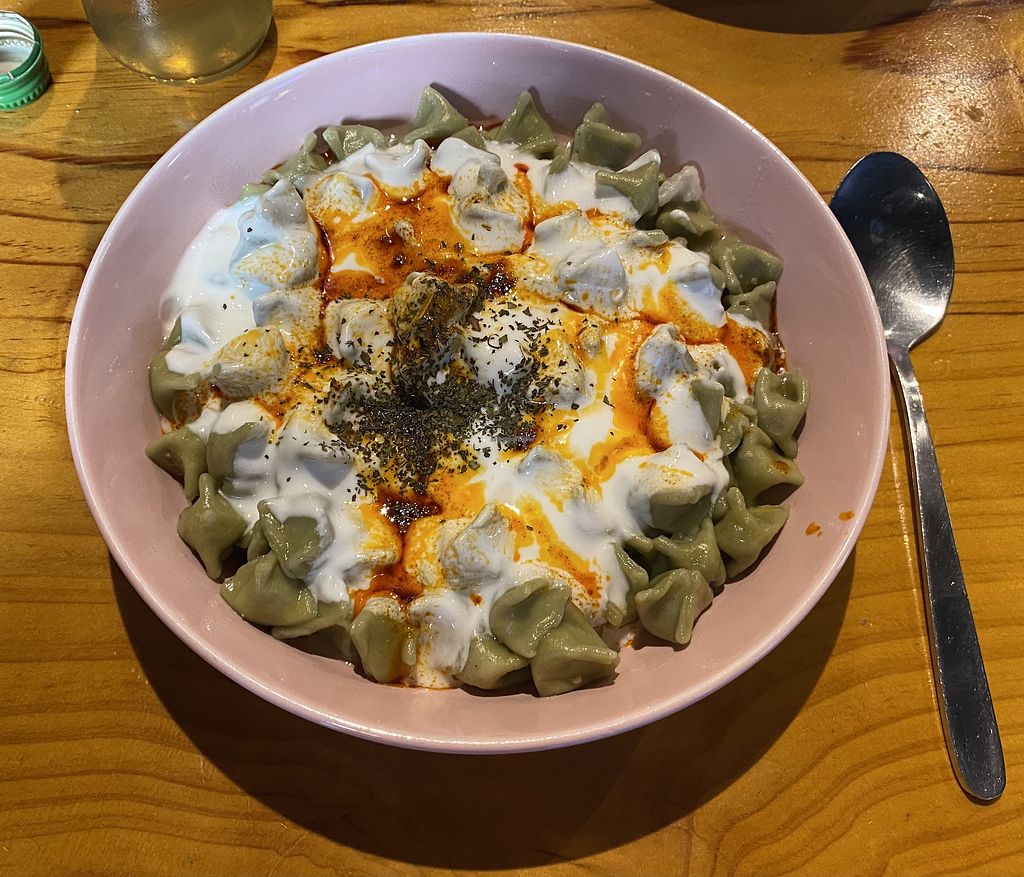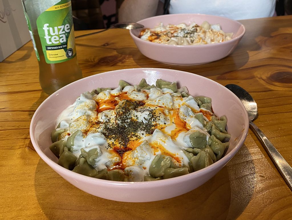 The Manti were really good! There is only one vegan option, but the menu is very small. For vegetarians, there are also 2 other options. The vegan Manti are spinach flavored with potato filling, vegan yoghurt and a pepper Sauce in top. The taste was really good and the meal was filling. Also a nice and healthy homemade option to all the other fast food Stores around there.