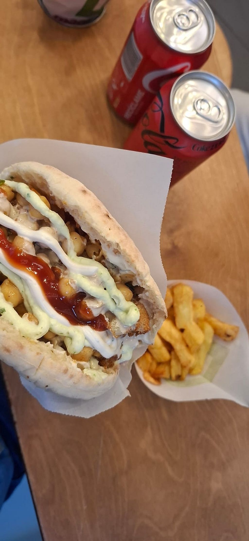 No em puc creure que estigui tip per 10 euros. Un pa de pita gros amb falafel, hummus i tot el relleno ilimitat que vulgui amb unes patates cruixents i calentetes. 10/10 tornaré