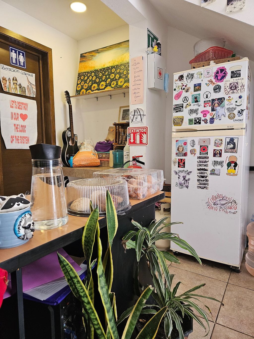 Vegan restaurant/coffee shop offering high quality coffee-based drinks, lunches and sweet bread. House-made food such as chilaquiles, cakes, hamburgers, sandwiches, quesadillas, burritos, kombuchas, coffee beans. Open Mon-Fri 9:00am-4:00pm. Closed Sat & Sun.