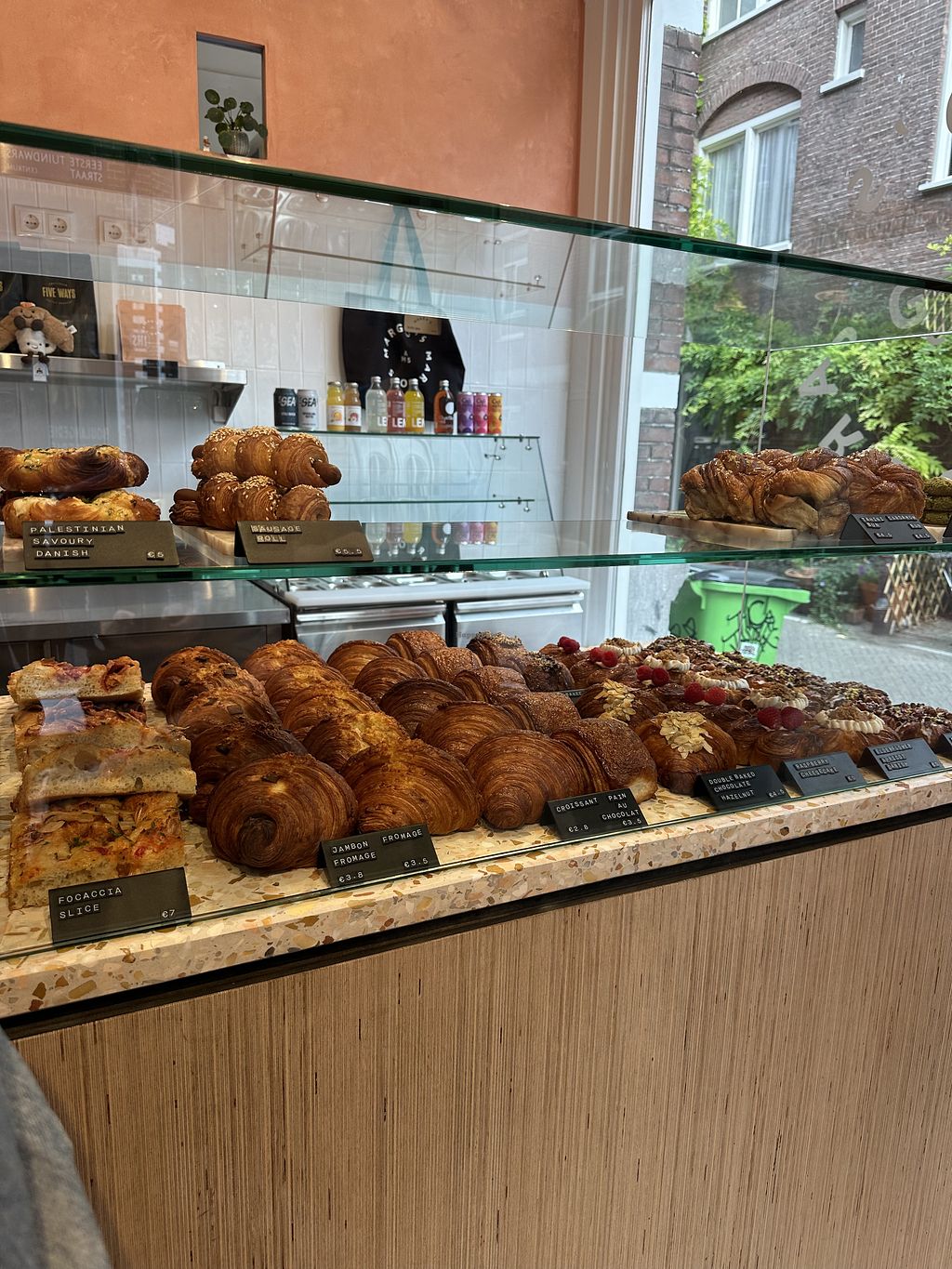 i seriously regret not coming here more often even though i lived all the way in breda lol. i absolutely ADORE this shop. so many fresh, delicious pastries and the cherry key lime danish is to die for. i WISH i couldve tried them all!! i will travel back to the netherlands just to come back here honestly. pro palestinian as well which we love!!!