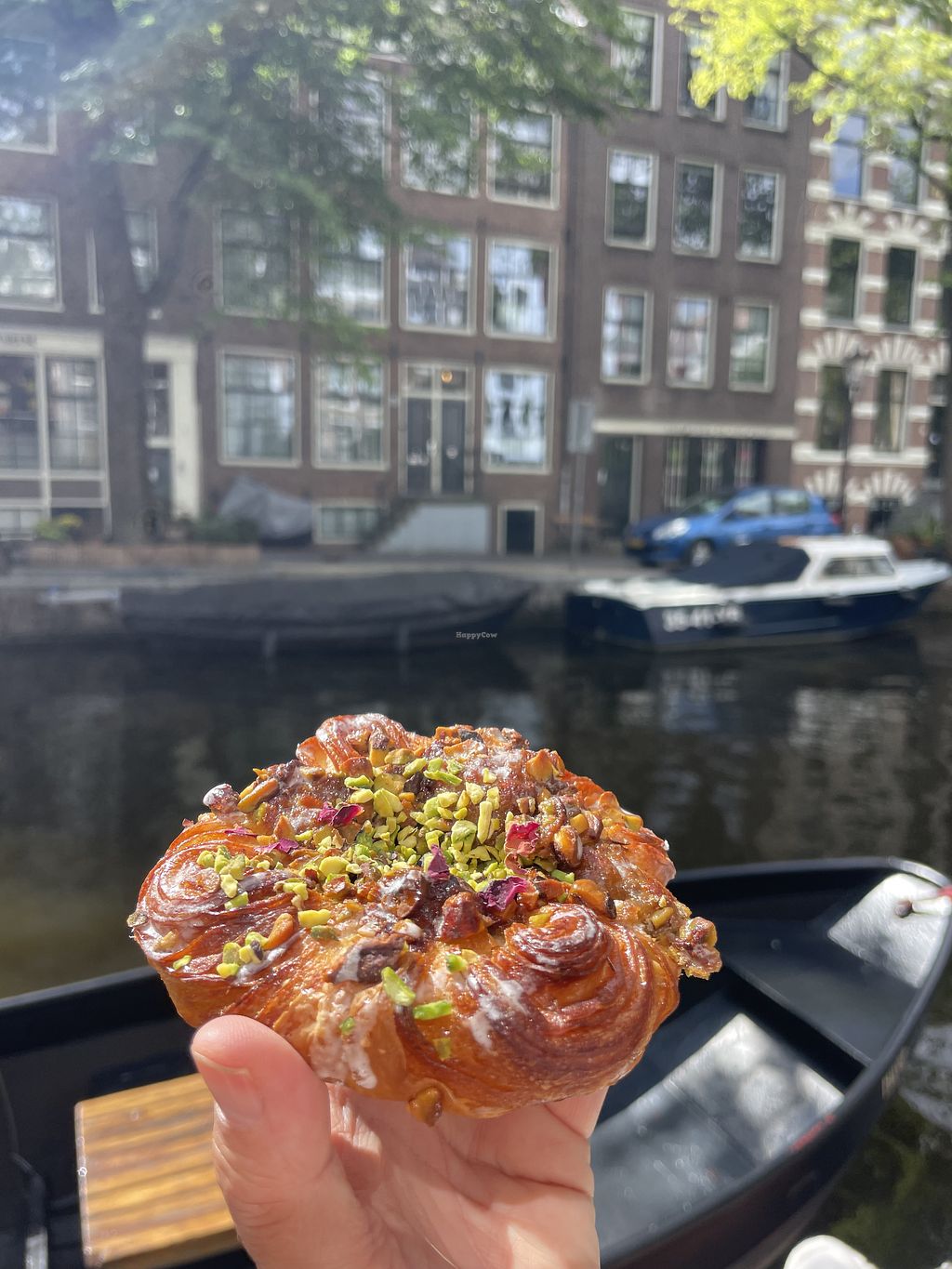This little café is in the beautiful Jordaan district, perfect for a takeaway breakfast at one of the beautiful Grachten. I love their yummy pastrys and it’s all vegan! 🤩The savory sandwiches also seemed nice, my boyfriend ordered one. Also there’s a variety of different hot drinks with plant milk. Definitely recommended!